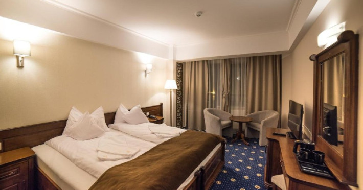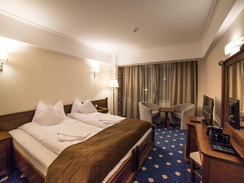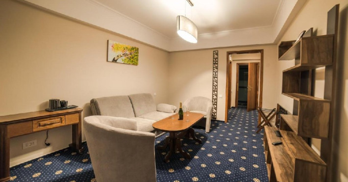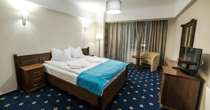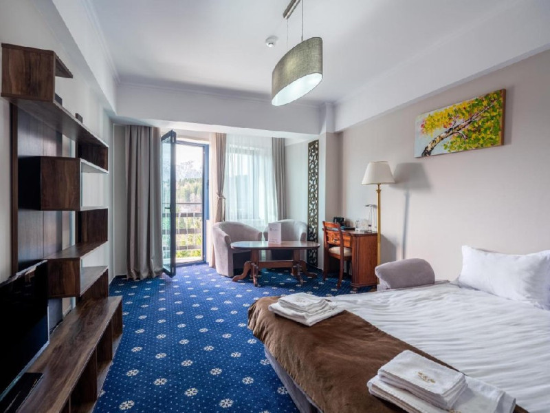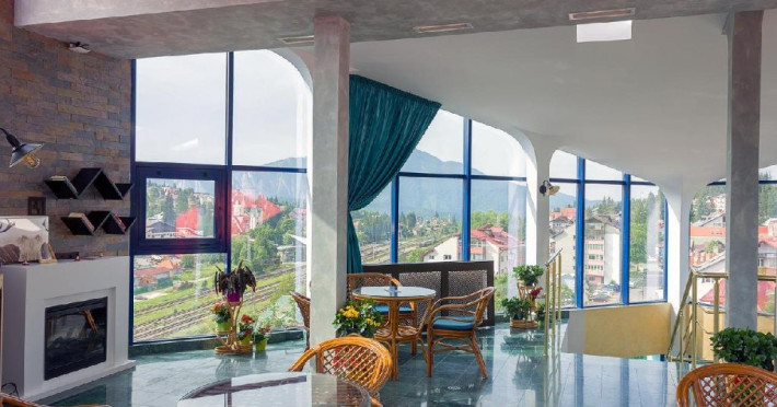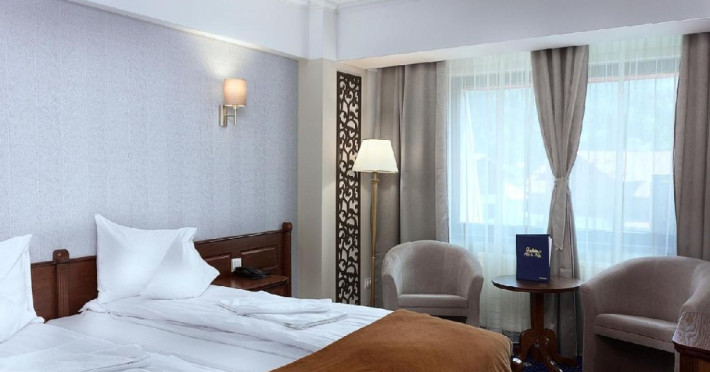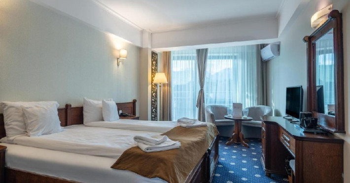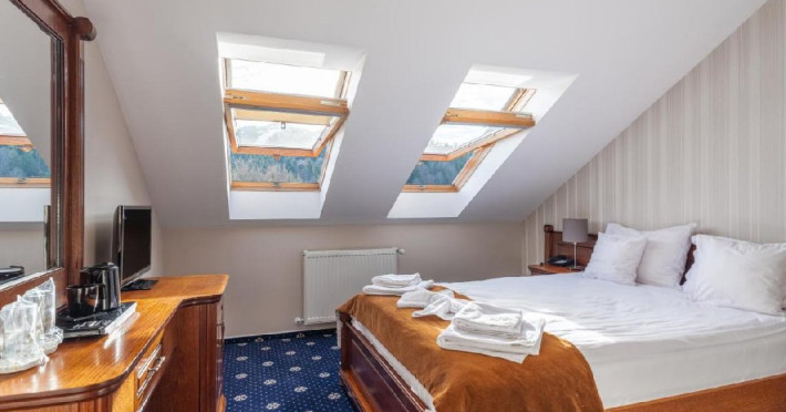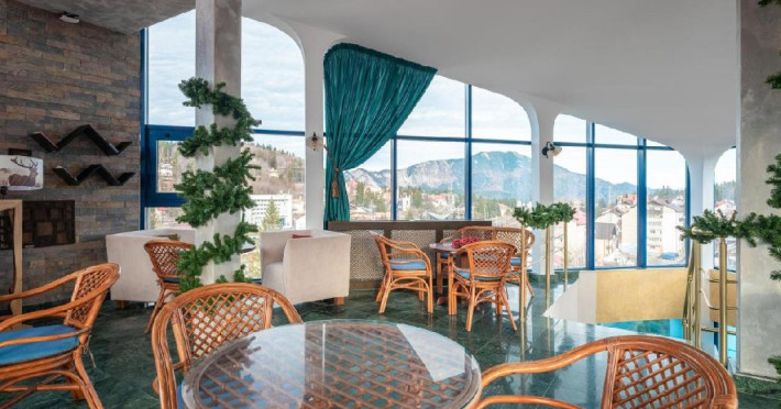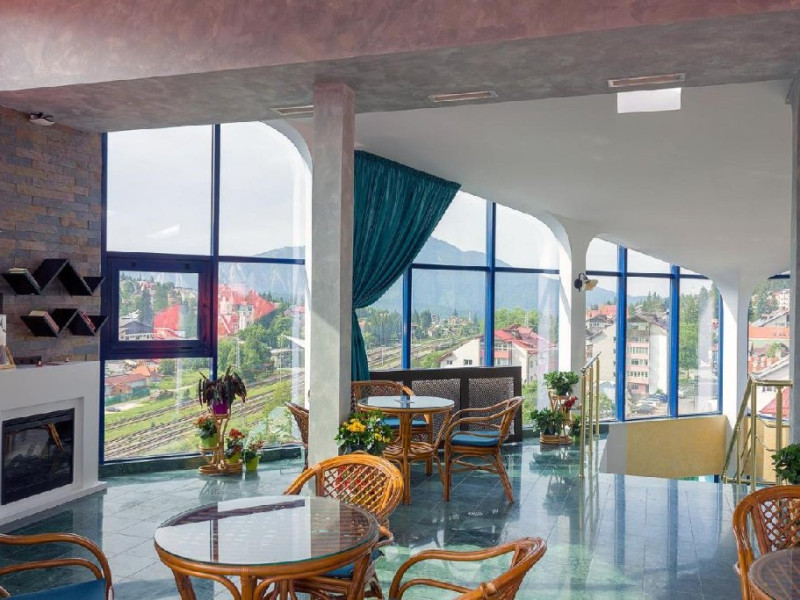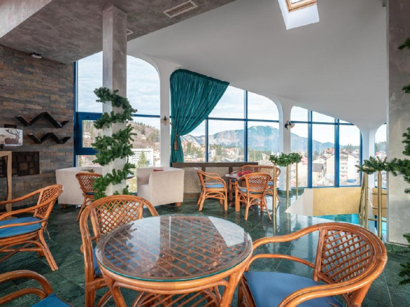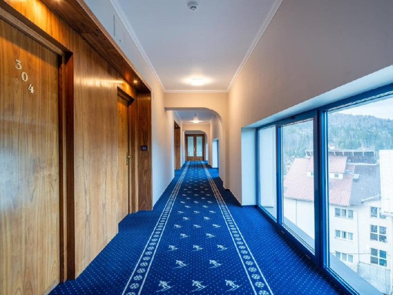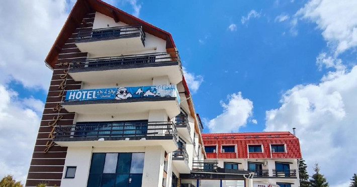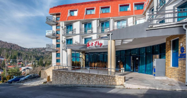 INFORMATII GENERALE Hotel Ski Sky se afla in statiunea Predeal si este situat la aproximativ 5 minute de mers pe jos de la telescaunul Clabucet. FACILITATI UNITATE Turistii au la dispozitie restaurant cu terasa, bar, parcare (contra cost), sauna, internet Wi-Fi. DESCRIERE CAMERE Camerele duble economy se afla la mansarda si dispun de un pat matrimonial. Camerele duble standard ofera un pat matrimonial sau doua paturi twin, iar unele dispun si de balcon. Apartamentele sunt formate din doua camere, o camera cu pat matrimonial si in cealalta camera se afla o canapea extensibila, ideal pentru familiile cu copii. Pe langa acestea dispun de 2 bai si balcon/terasa. Toate camerele sunt dotate cu TV, Wi-Fi, baie proprie. LOCALIZARE Hotel Ski Sky se afla in statiunea Predeal si este situat la aproximativ 5 minute de mers pe jos de la telescaunul Clabucet. ATRACTII TURISTICE Manastirea Predeal, Pestera de Gheata, Canionul Sapte Scari. POLITICI Nu se accepta animale de companie. SERVICII DE MASA Mesele se servesc in restaurantul propriu. FACILITATI EVENIMENTE Hotelul dispune de sala de conferinte cu o capacitate de 30 locuri.