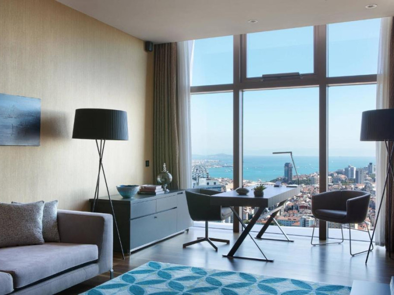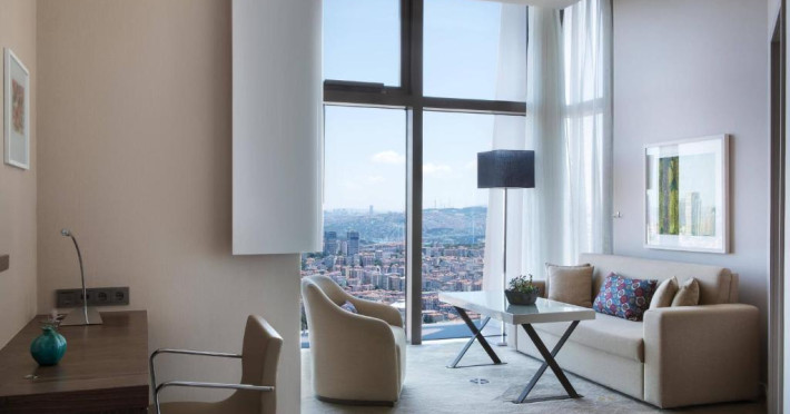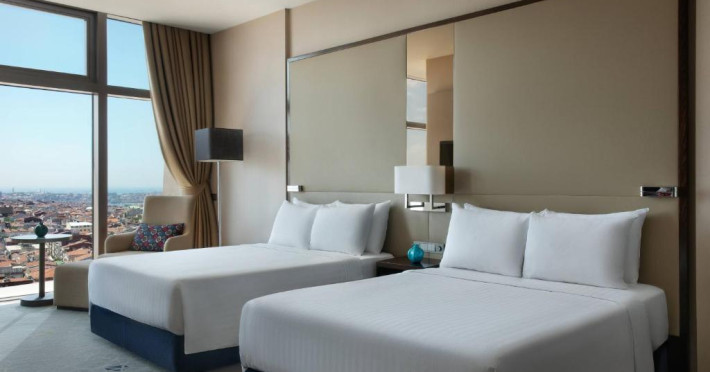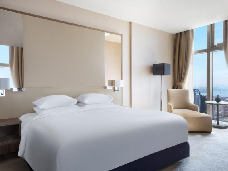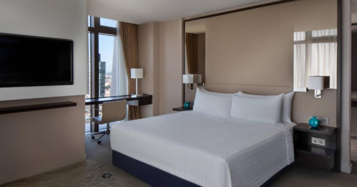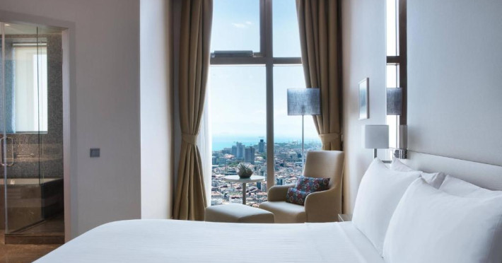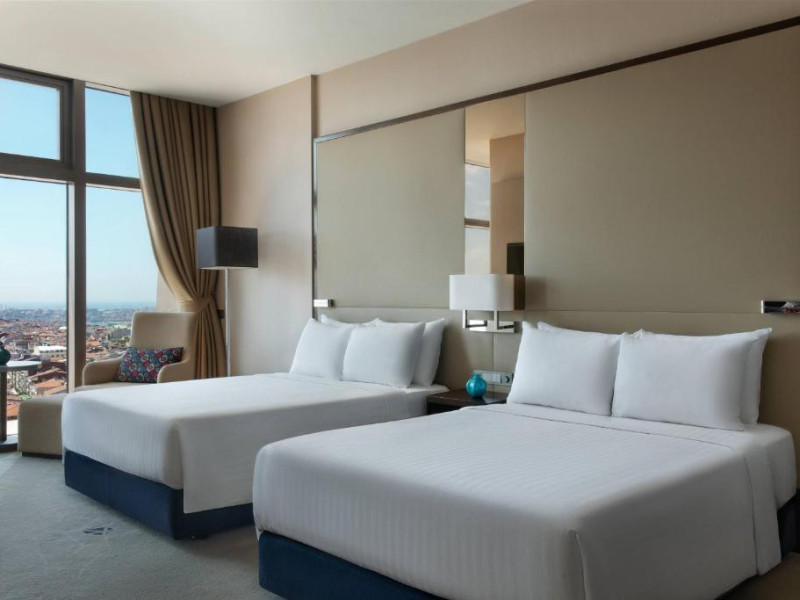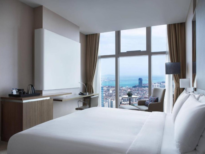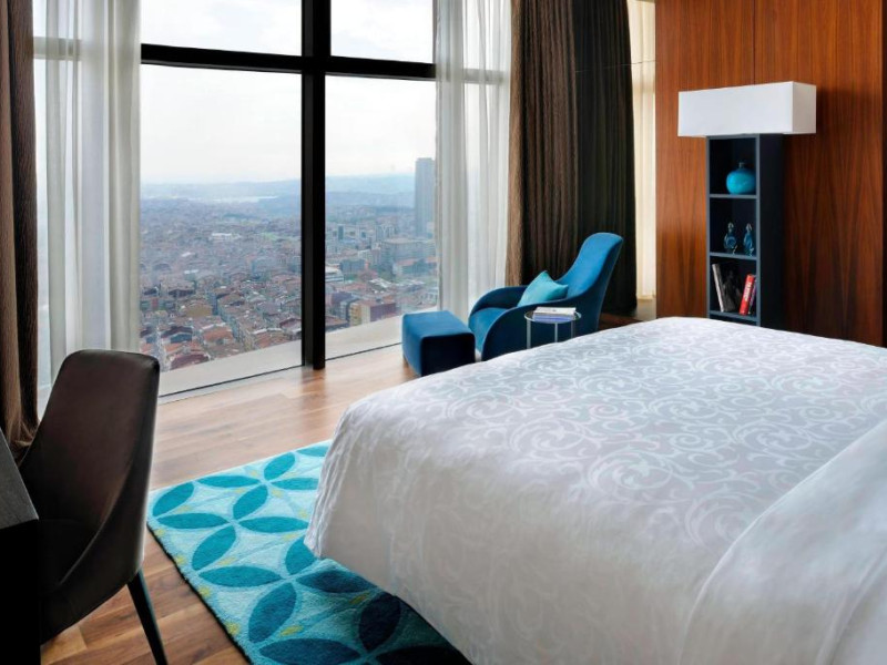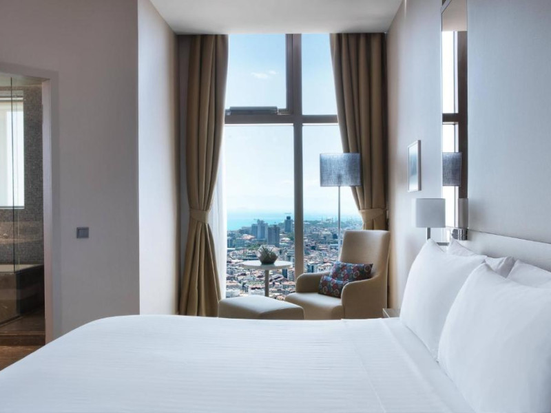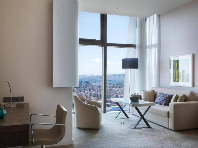 Camerele elegante combină confortul specific lanțului Marriott cu elemente de design contemporan. Ferestrele panoramice oferă perspective impresionante asupra orașului și Bosforului. The Dish Room Restaurant servește preparate din bucătăria turcească și internațională, iar The Terrace Bar este locul ideal pentru cocktailuri cu priveliști panoramice.