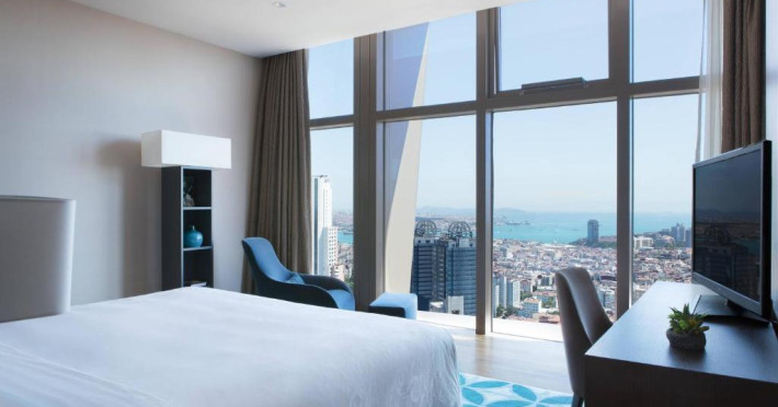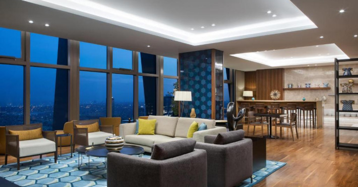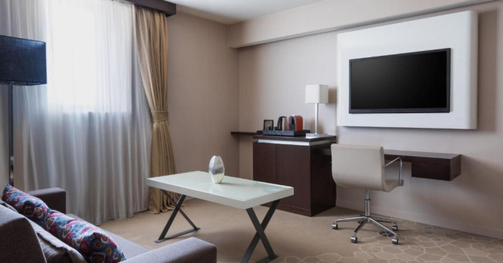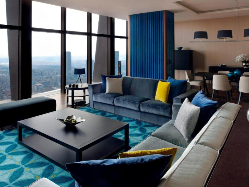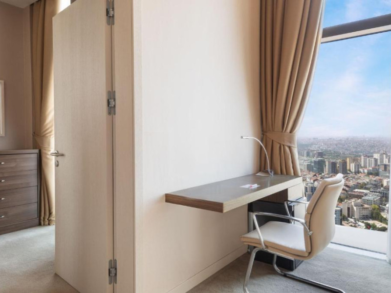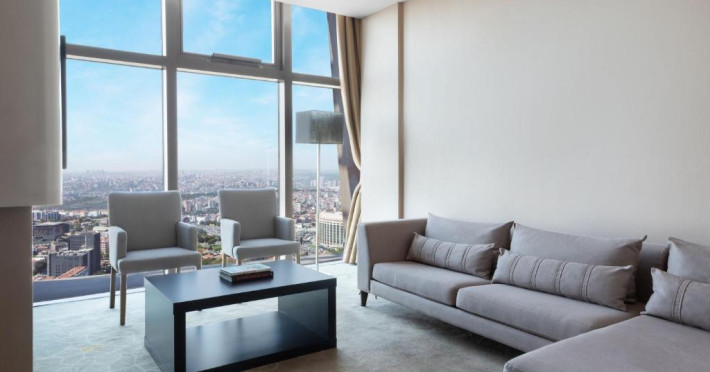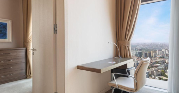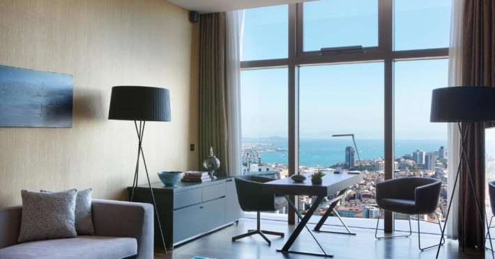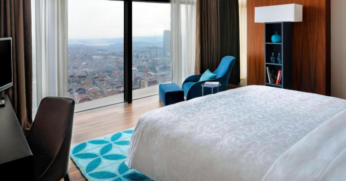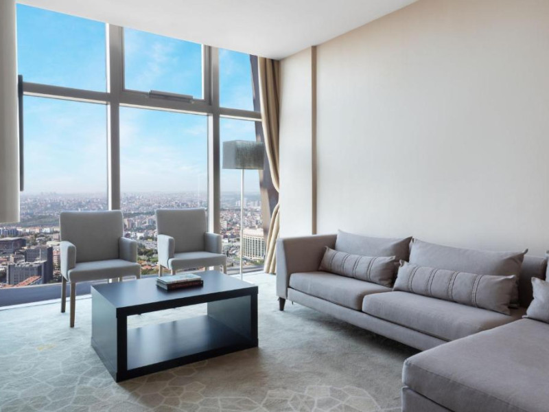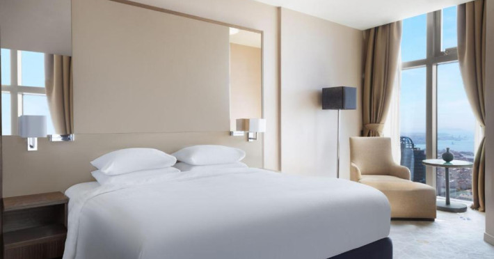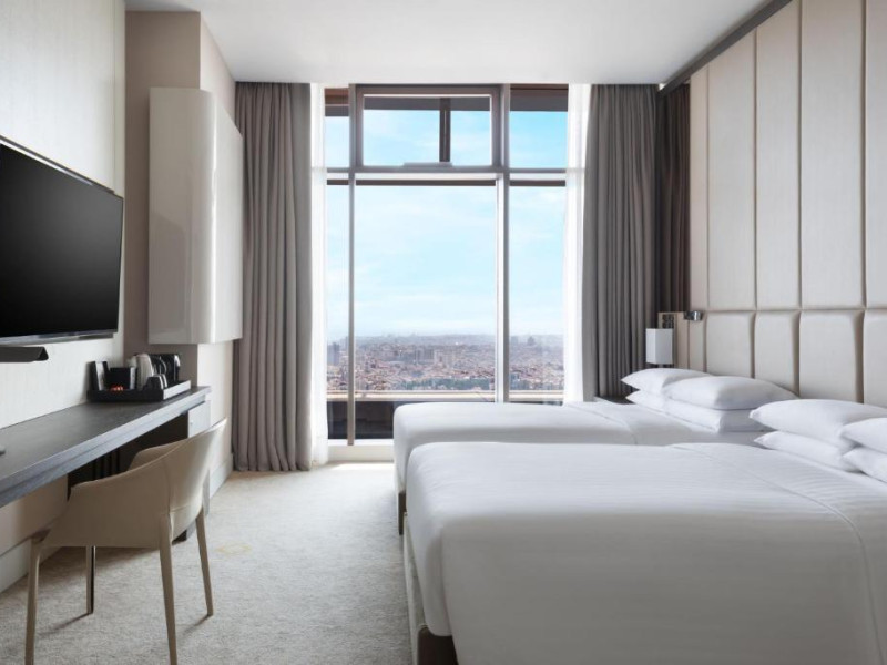 Camerele elegante combină confortul specific lanțului Marriott cu elemente de design contemporan. Ferestrele panoramice oferă perspective impresionante asupra orașului și Bosforului. The Dish Room Restaurant servește preparate din bucătăria turcească și internațională, iar The Terrace Bar este locul ideal pentru cocktailuri cu priveliști panoramice.