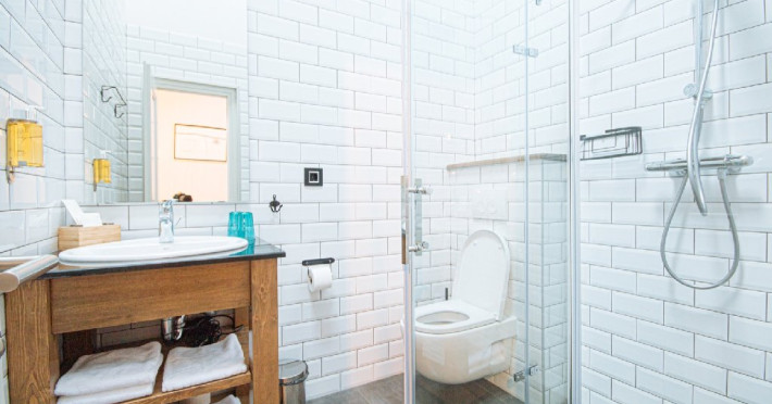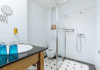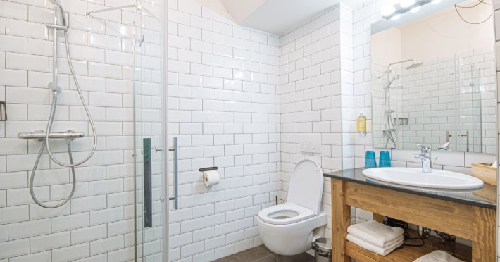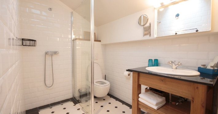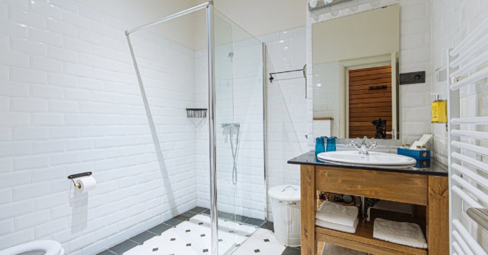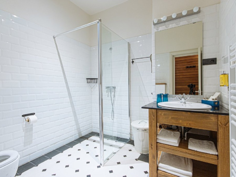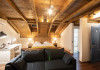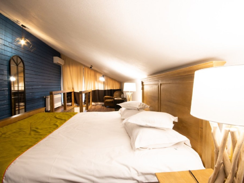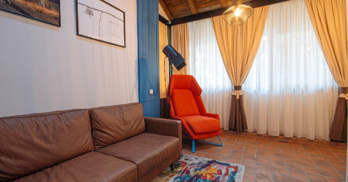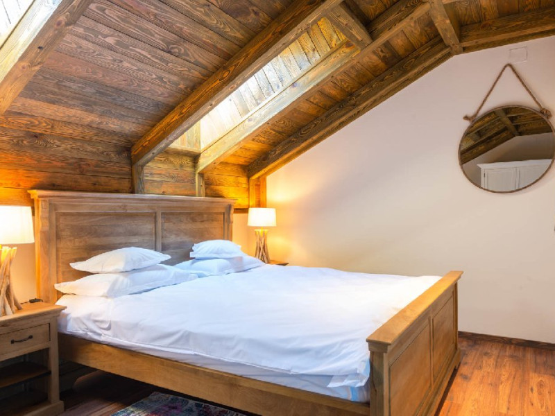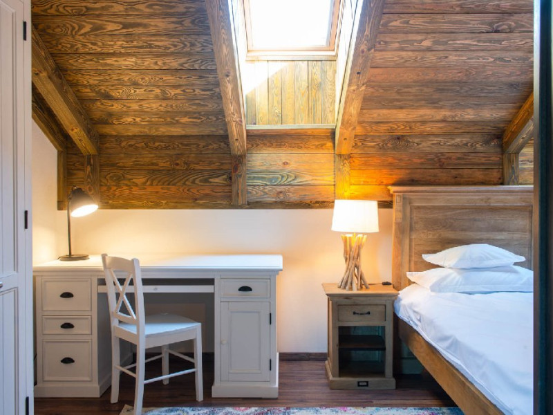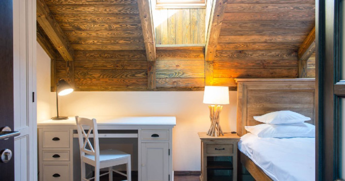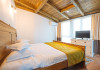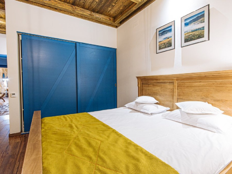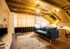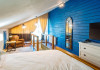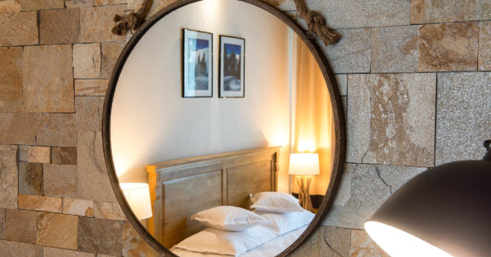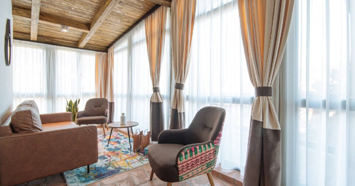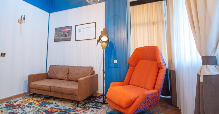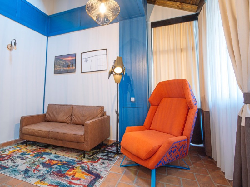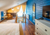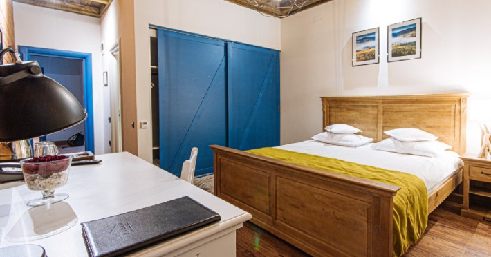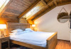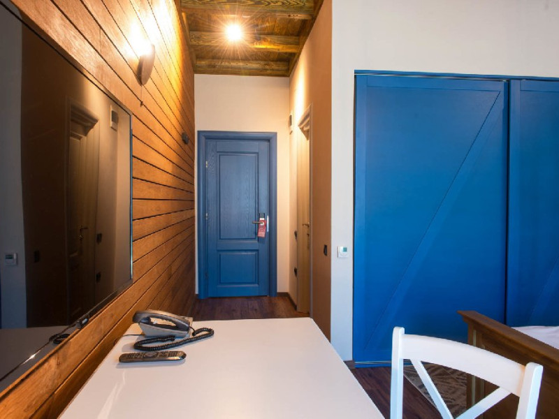Camera dubla Superior - cu un design primitor, are o scara interioara, la primul nivel fiind baia si o canapea extensibila, iar la mansarda dormitorul cu un pat king bed. Suprafata de 35 mp, cu balcon.