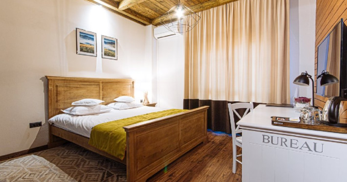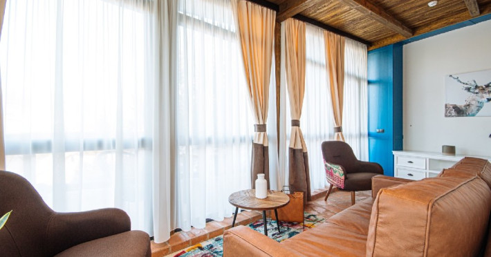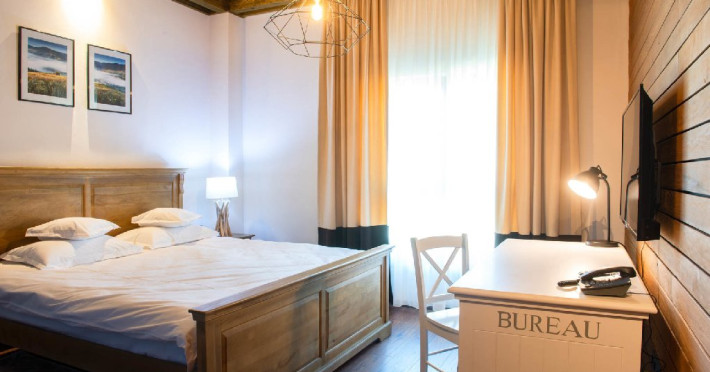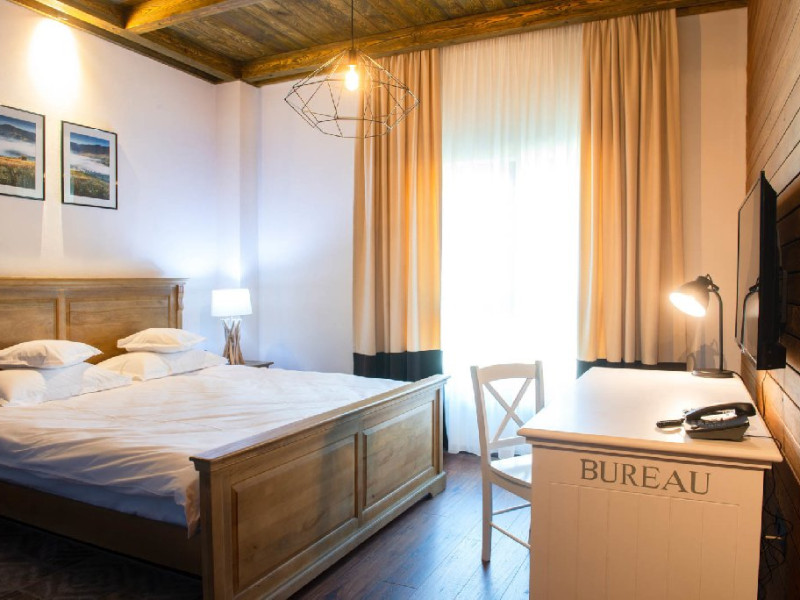 Camera dubla cu terasa - este o camera cocheta cu privelistea catre Raul Dorna, cu o terasa generoasa, situata la etajul 1 langa living. Suprafata de 30 mp.