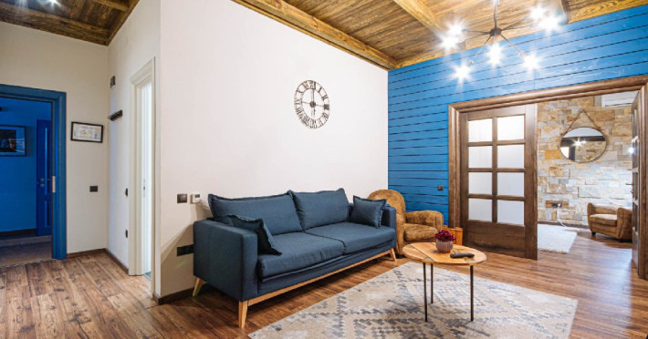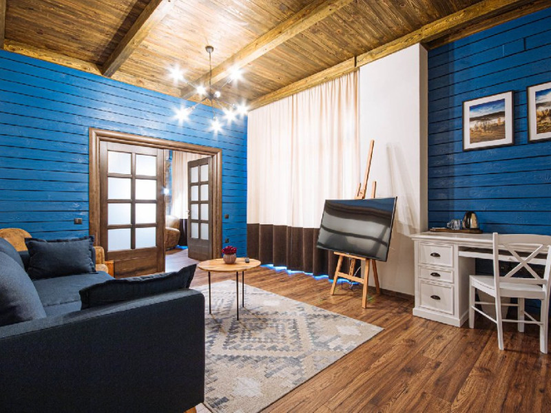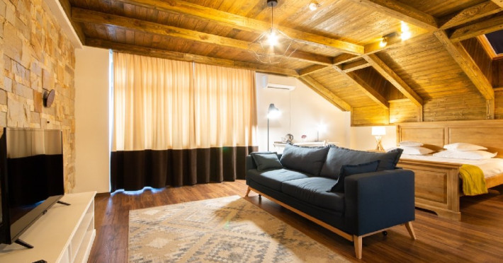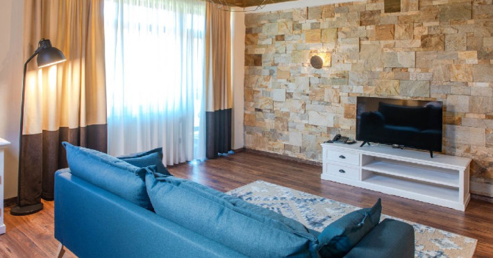 Apartament Deluxe - cu suprafata de 50 mp, cu balcon, cu un pat dublu extra-large in dormitor si canapea extensibila in living.