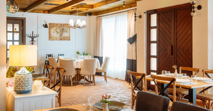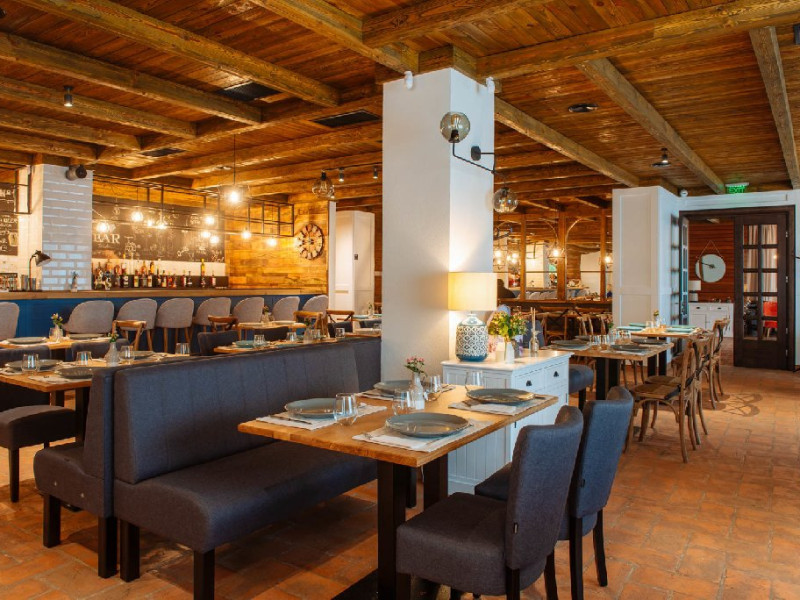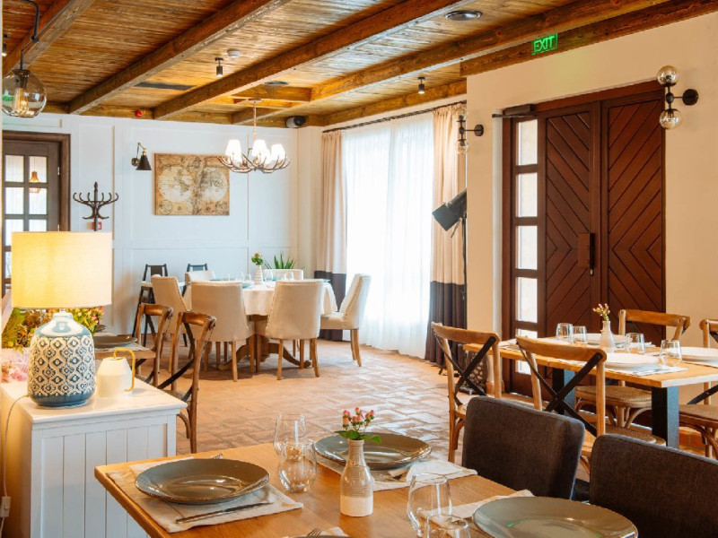SERVICII DE MASA Restaurantul on-site cu o capacitate de 90 de persoane ofera bucatarie traditionala si europeana, plus o selectie de cele mai bune vinuri din podgorii romanesti si straine. Kaban organizeaza si evenimente private si corporate. Restaurantul este deschis zilnic intre orele 12:00 - 21:00.