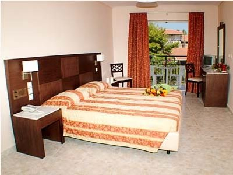 Localizare: in statiunea Argassi, la 200 m distanta de plaja si de zona centrala a localitatii, intr-o zona mai inalta cu gradini bine ingrijite, beneficiind de o priveliste frumoasa catre orasul Zakynthos; la 100 m de statia de autobus, 5 km de aeroport, 3 km de capitala Zante. Facilitati hotel: format din 3 cladiri, hotelul ofera 2 piscine in aer liber, piscina pentru copii, sezlonguri si umbrelute la piscina, snack bar, loc de joaca pentru copii, parcare, restaurant, lounge bar, receptie, schimb valutar, aer conditionat, seif. Facilitati camere: TV, aer conditionat, frigider, telefon, uscator par, baie, balcon cu vederi diferite (gradina, munte, mare)