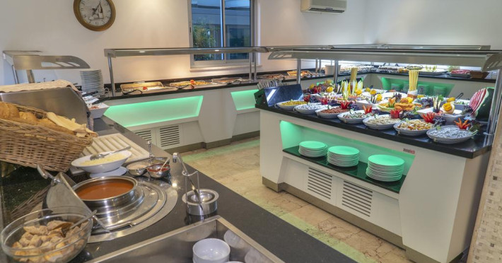 La Kleopatra Celine Hotel oaspeții au la dispoziție un restaurant care servește mâncare în stil bufet. Masa poate fi servită atât în interior, cît si în aer liber, pe terasă, în funcție de vreme. Oaspeţii pot avea diverse băuturi răcoritoare sau alcoolice la bar.