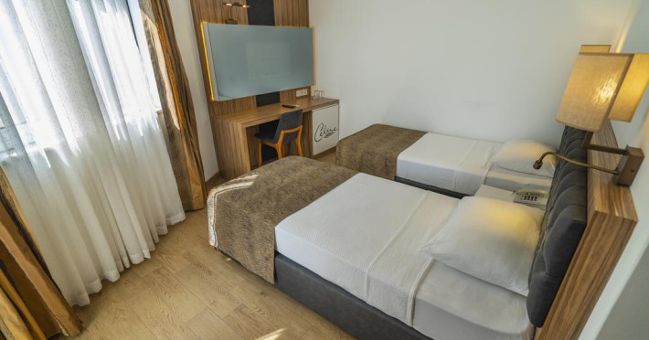 Sunt disponibile 67 camere. Camerele confortabile de la Kleopatra Celine Hotel au pardoseală de gresie/ marmură, aer condiționat, Tv cu canale prin satelit și seif. În camere există baie cu cadă sau duș prevăzută cu foehn. Unele camere au balcon cu vedere la mare sau la piscină. Fiecare cameră dispune de minibar. Oaspeții pot solicita serviciul de room service pentru a servi masa sau diverse băuturi. Oaspeții au acces gratuit la serviciul Wi-fi în camere. Curățenia in cameră se face zilnic. Proprietatea oferă camere pentru familie cu o suprafață mai mare și un număr mai mare de paturi față de cele standard.