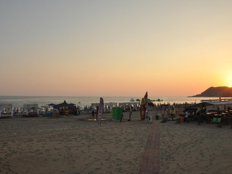 Pe plajă există șezlonguri și umbrele de plajă contra cost.