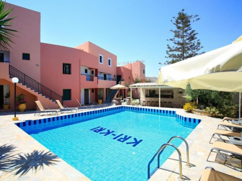 Localizare: Kri Kri Village este localizat in satul Gournes, la 80 m de plaja. Orasul Heraklion este la 16 km de hotel. Orasul Hersonissos se afla la 30 minute cu masina. Atractii turistice din zona: -Muzeul Folcorului Lixnostatis la 13 km -Nikos Kazantzakis Museum la 13km -Muzeul de Arheologie Heraklion la 13 km -Zidurile Venetiene la 13 km Facilitati: Proprietatea dispune de gradina, piscina, umbrele si sezlonguri, wifi in zone publice, snack bar, rent a car, entertainment nights, karaoke (contra-cost), activitati sportive: pescuit (contra-cost), ciclism; servicii de curatatorie (contra-cost), fax/copiator, zona de lounge *animalele de companie sunt acceptate la cerere Tipuri de camere: Toate tipurile de camere dispun de chicineta, TV, baie cu cada sau dus, uscator de par, firgider, masa, uscator de haine, balcon -Studio 20mp: dispune de doua paturi single. Capacitatea maxima de doua persoane -Apartment one bedroom 45mp: dispune de doua paturi single si un pat double. Capacitatea maxima de patru persoane