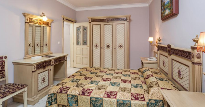 Sunt disponibile 330 camere. În camere există baie cu cadă sau duș, foehn, articole de toaletă gratuite, precum și halate de baie și papuci. Camerele de la Larina Family Resort au în dotare Tv cu canale prin satelit și seif. Unele camere au balcon, cu vedere la piscină, unde oaspeții se pot relaxa în voie. Fiecare cameră dispune de un aparat pentru preparare cafea sau ceai. Oaspeții pot solicita serviciul de room service pentru a servi masa sau diverse băuturi. Curățenia in cameră se face zilnic. Proprietatea oferă camere pentru familie cu o suprafață mai mare și un număr mai mare de paturi față de cele standard.