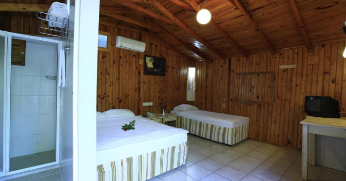 Sunt disponibile 63 camere. Unele camere au balcon, cu vedere la grădină, unde oaspeții se pot relaxa în compania celor dragi. În camere există baie prevăzută cu foehn. Fiecare cameră dispune de minibar. Camerele de la Leda Beach Hotel sunt dotate cu aer condiționat, Tv cu canale prin satelit și seif. Oaspeții au acces la serviciul Wi-fi în camere contra cost. Curățenia in cameră se face zilnic. Proprietatea oferă camere pentru familie cu o suprafață mai mare și un număr mai mare de paturi față de cele standard. Se pot rezerva de asemenea camere pentru nefumători.