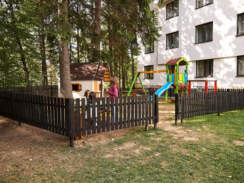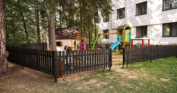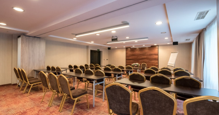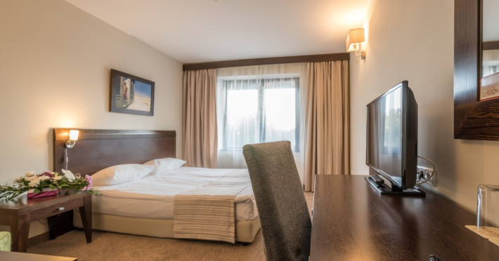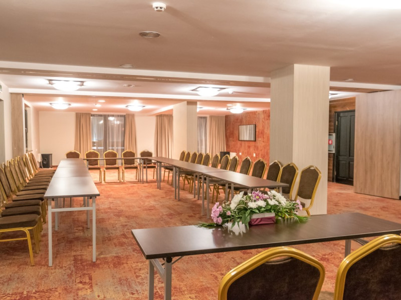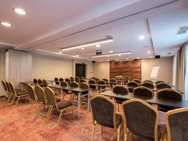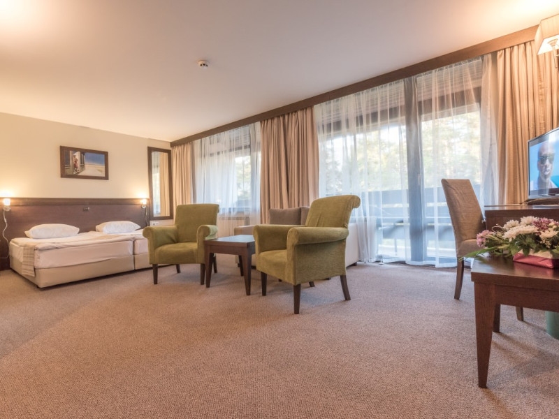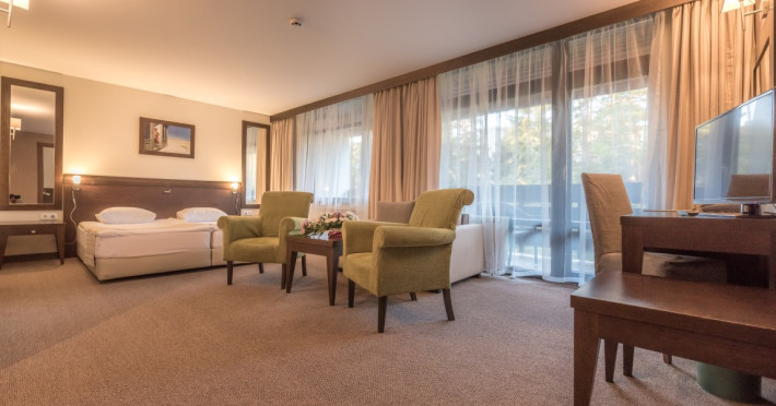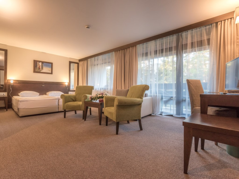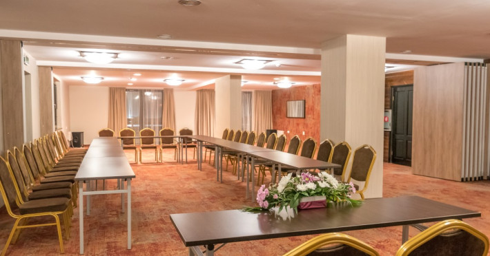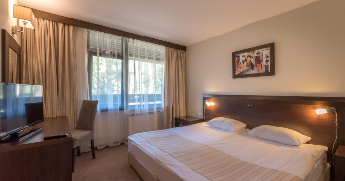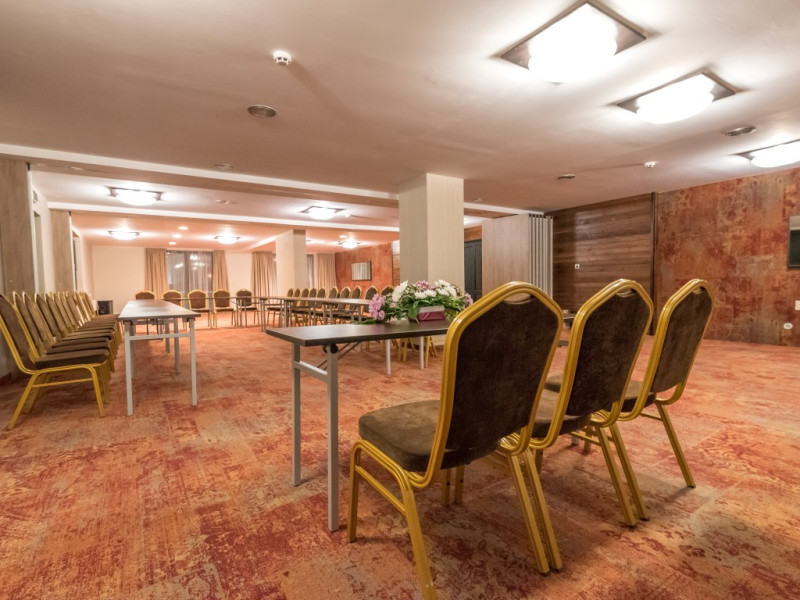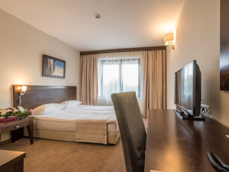 CAPACITATE: - cladire cu 6 etaje - 2 lifturi - 56 camere duble (max. 2 persoane, 22 m²) - 61 camere duble mari (camera dubla mai mare, max. 2+1/3 persoane, 33 m²) - 24 camere de familie (camera dubla mai mare, max. 2+2/3 persoane, 38 m²) - 5 apartamente cu un dormitor (max. 4+1/5 persoane, 74 m²).