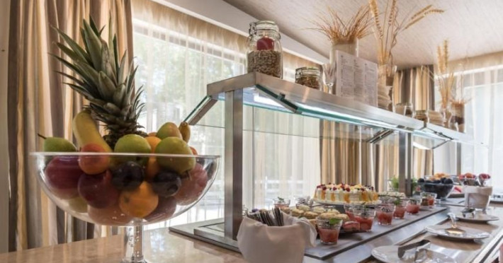 FACILITATI HOTEL: Hotelul dispune de un restaurant principal cu 200 -220 de locuri, care serveste bucatarie internationala si locala bulgareasca ( 07:30 - 23:00 ), restaurant traditional bulgaresc Mehana cu o capacitate de 80 locuri ( 17:00 - 00:00 ), Lobby Bar dispus pe 2 nivele cu semineu care ofera o selectie de vinuri, cocktaluri, bauturi calde si reci ( 07:30 - 23:00 ), 2 sali de conferinta : Lion cu o capacitate maxima de 100 locuri si Borovets : 150 locuri - ambele sunt iluminate natural, echipament tehnic inclusiv internet wireless, sistem de sunet cu microfoane wireless, multimedia, flipchart, o sala pentru work shopuri cu 15 locuri, centrul SPA Dzen cu diverse tehnici de masaj, sauna aromatica si finlandeza, zona de relaxare, piscina interioara si fitness. Nu este permis accesul cu animale de companie.