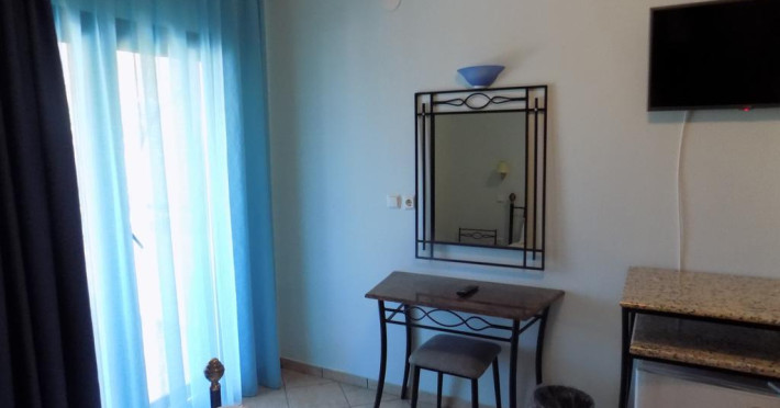 Unele camere au balcon cu vedere la mare sau la piscină. În camere există baie cu cadă sau duș ce are în dotare foehn și articole de toaletă gratuite. Camerele confortabile de la Makednos au pardoseală de gresie/ marmură, aer condiționat, Tv cu canale prin satelit și seif. Curățenia in cameră se face zilnic. Toate camerele spațioase de la Makednos au zonă de relaxare cu canapea, ceea ce oferă un plus de confort. Fiecare unitate de cazare are frigider. De asemenea, este disponibilă o zonă de luat masa. Proprietatea oferă camere pentru familie cu o suprafață mai mare și un număr mai mare de paturi față de cele standard. Se pot rezerva de asemenea camere pentru nefumători.