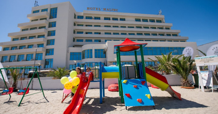 Localizare: la intrare in statiunea Mamaia, chiar langa plaja. Capacitate: cladire cu 6 nivele, 2 lifturi, 153 spatii de cazare (dintre care 22 sunt apartamente, 7 8sunt camere duble cu paturi twin si 53 camere duble cu paturi matrimoniale). Hotel Malibu**** a fost renovat in anul 2018 (camere, restaurant & celelalte zone interioarecomune). In iarna anului 2020 si baile camerelor au primit o noua infatisare.