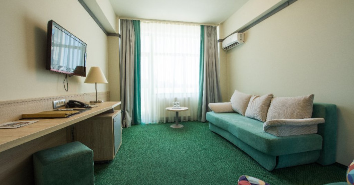 Apartament: este spatiul de cazarea ce are in componenta sa un dormitor cu un patmatrimonial si un living cu o canapea extensibila. In numar de 20 apartamente, acestea au osuprafata cuprinsa intre 35 mp si 40 mp. Poate avea vedere catre oras sau vedere catre mare.Nu se poate adauga pat suplimentar-pliabil.