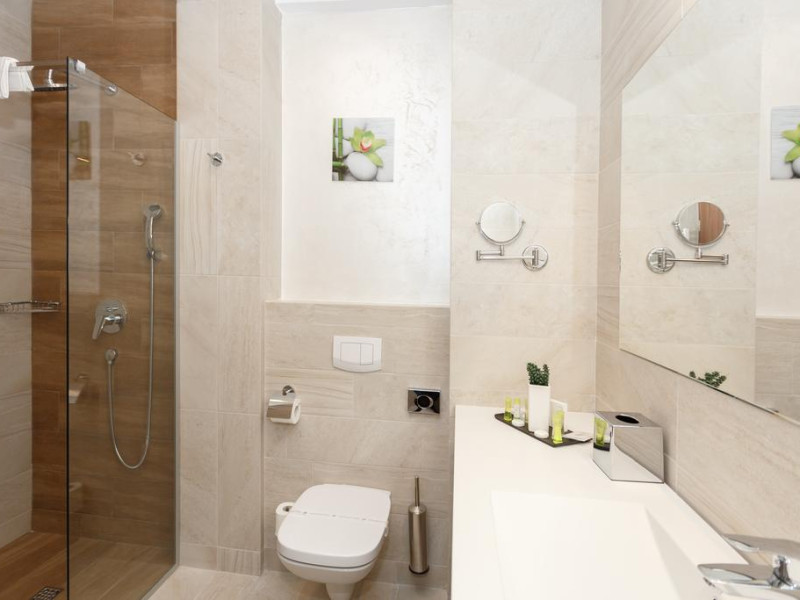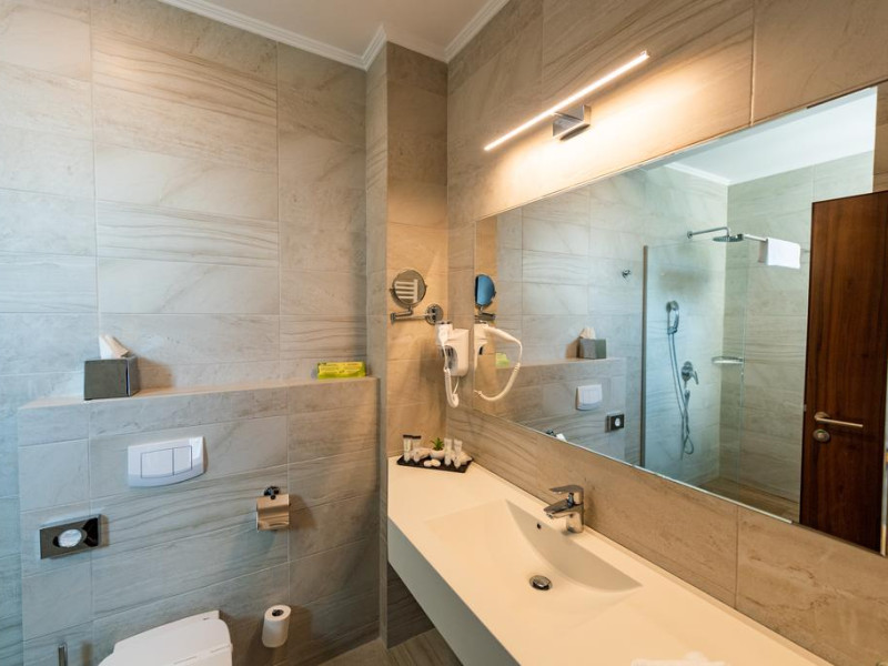 În camere există baie cu cadă sau duș prevăzută cu foehn. Camerele de la Manor au în dotare aer condiționat și Tv. Curățenia in cameră se face zilnic.
