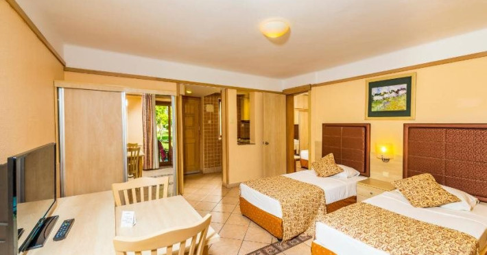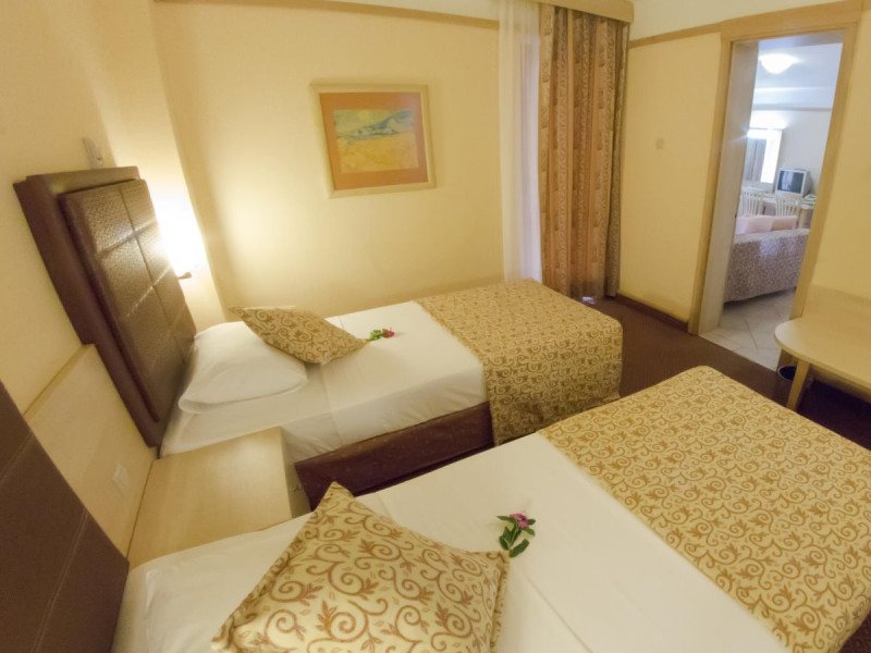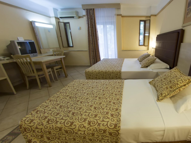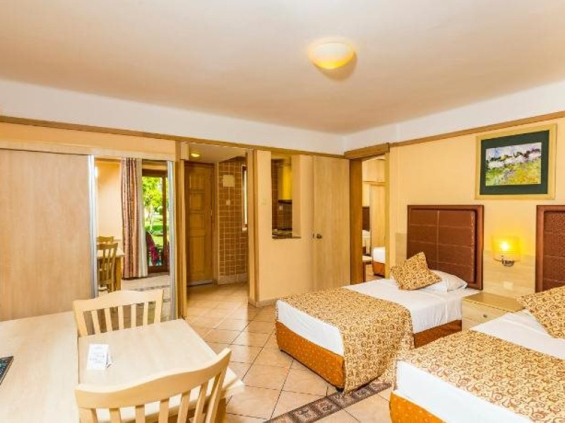 FACILITATI HOTEL: Hotelul pune la dispozitia oaspetilor sai un restaurant principal, piscina exterioara, piscina speciala pentru copii, snack bar, bar la piscina, supermarket, serviciu de spalatorie si curatatorie, baie turceasca si sauna, masaj, seif( la receptie), si serviciu medical. Echipa de divertisment organizeaza diverse activitati pe tot parcursul zilei . Parcarea publica este disponibila gratuit dar la o locatie in apropiere. Accesul la internet este contra cost: 1 euro /zi. Plaja este cu nisip, se asigura sezlinguri si umbrelute gratuite.Restaurantul a la carte serveste bauturi locale non alcoolice intre orele 10 :00 -17:00 gratuit si pune la dispozitia turistilor meniuri din bucataria international, mini club pentru copii (intre orele 10:00 aaa 12 :00 si 15:00 -17:00 )
