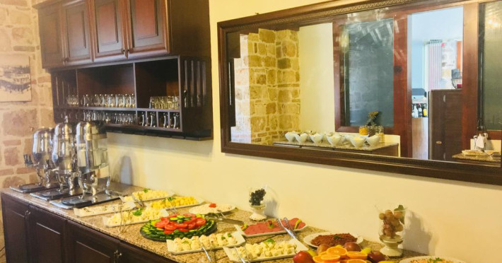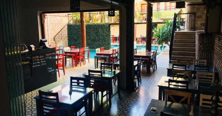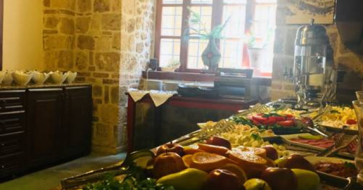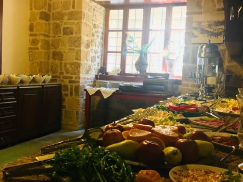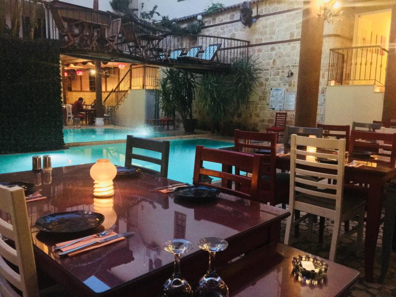 La Mediterra Art Hotel oaspeții au la dispoziție un restaurant care servește mâncare à la carte. Bucătăria turcească de la Mediterra Art Hotel propune preparate delicioase care satisfac gusturi diverse. Masa poate fi servită atât în interior, cît si în aer liber, pe terasă, în funcție de vreme. Oaspeţii pot avea diverse băuturi răcoritoare sau alcoolice la bar. De asemenea , în cadrul proprietății, există cafenea și snack bar ideale pentru o gustare rapidă.