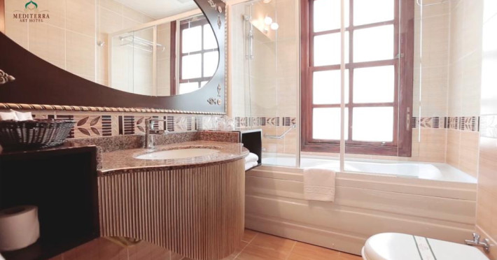 Din facilitățile oferite de proprietate nu lipsesc facilitățile spa, unde oaspeții se pot relaxa în voie la diverse tipuri de masaj. Mediterra Art Hotel are în dotare cadă cu hidromasaj. În cadrul proprietatății există piscină în aer liber pentru cei care doresc să se relaxeze și să se bronzeze. Aceasta este prevăzută cu șezlonguri confortabile, prosoape și umbrele de soare.