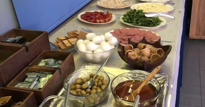 La proprietate există o cafenea care oferă cafea, băuturi și gustări. Masa poate fi servită atât în interior, cît si în aer liber, pe terasă, în funcție de vreme.