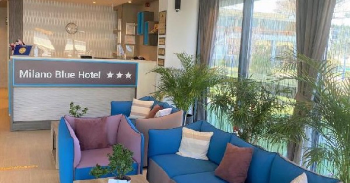 Hotel Milano Blue 3 stele Mamaia este un hotel nou, pozitionat pe faleza, in partea de centru-sud, langa Hotel Flora si la 5 minute de mers pe jos de Aqua Magic si Satul de Vacanta. Milano Blue este un hotel micut, cu 28 de spatii de cazare impartite in camere duble si suite. Pe langa spatiile destinate cazarii, Milano Blue mai are in dotare un lobby amenajat modern si confortabil, receptie, lift, camera pentru pastrarea bagajelor.