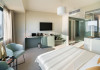 Suita Junior Deluxe are o suprafata de aproximativ 35 mp, ofera vedere la mare si este dotata cu pat dublu extra large. Camera dispune de baie proprie cu dus sau cada, uscator de par, TV, internet Wi-Fi, aer conditionat, minibar, cafetiera, seif, room service si articole de toaleta premium LaOccitane.
