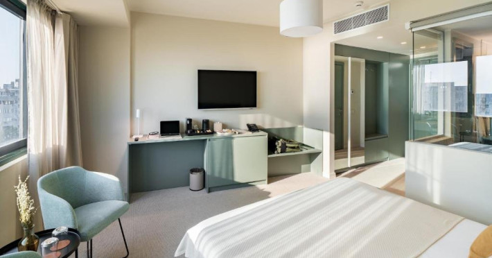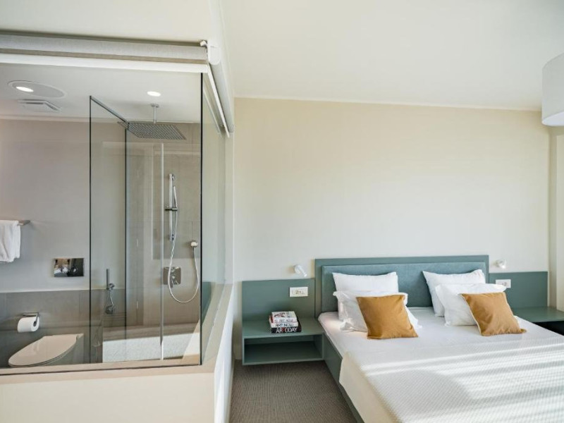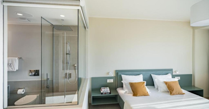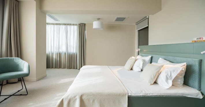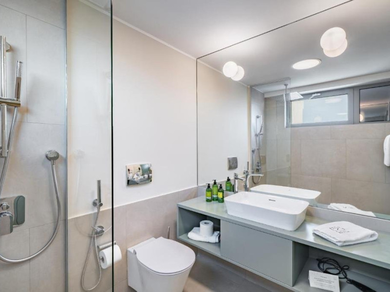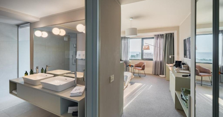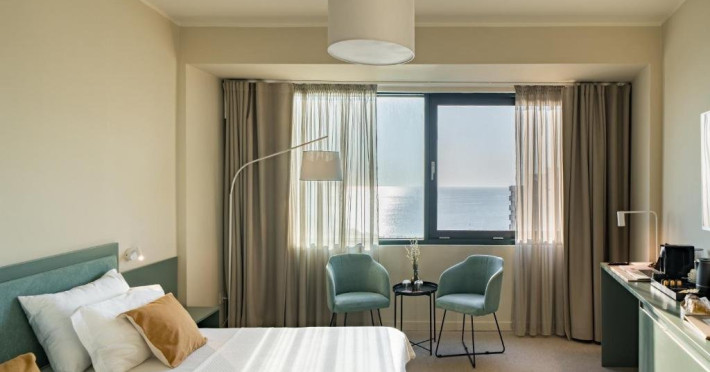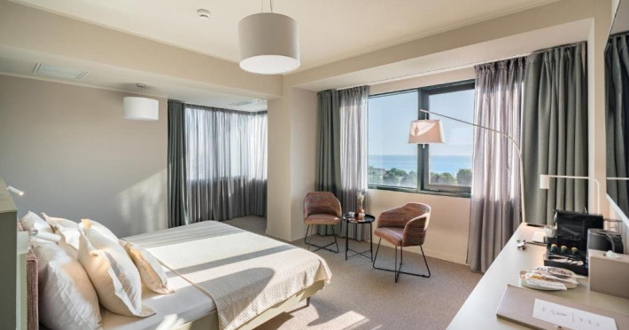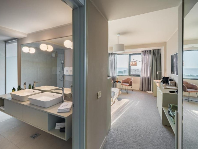 Camera Dubla Superior are o suprafata de aproximativ 24 mp, ofera vedere la mare si balcon si este dotata cu pat dublu extra large. Camera dispune de baie proprie cu dus, uscator de par, TV, internet Wi-Fi, aer conditionat, minibar, cafetiera, seif, room service si articole de toaleta premium LaOccitane.