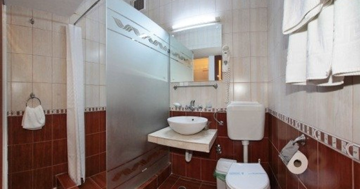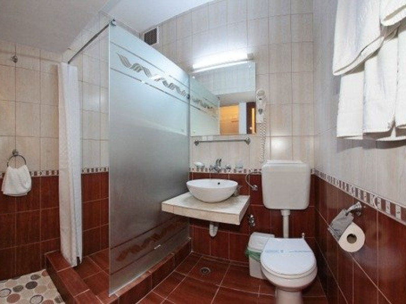 35 Camere duble standardTipuri cameraCamera dubla standard are o suprafata totala de 16,5 mp incluzand baia de 3 mp si are o capacitate maxima de: 2 adulti si un copil cu varsta pana la 6.99 ani; copilul nu beneficiaza de pat suplimentar. Camerele standard nu permit introducerea unui pat suplimentar, accepta maxim un patut pentru copil 0-4 ani.