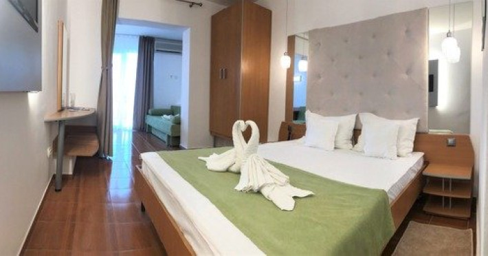 Camera dubla extinsa este spatioasa, are o suprafata de 23 mp incluzand baia de 3,8 mp si este dotata cu pat matrimonial/twin si canapea extensibila, destinata in special familiilor cu 1-2 copii.