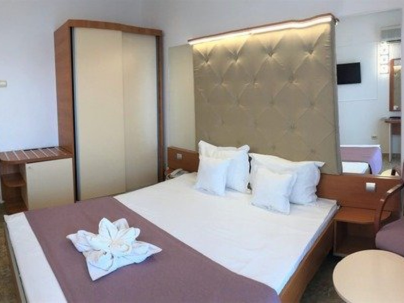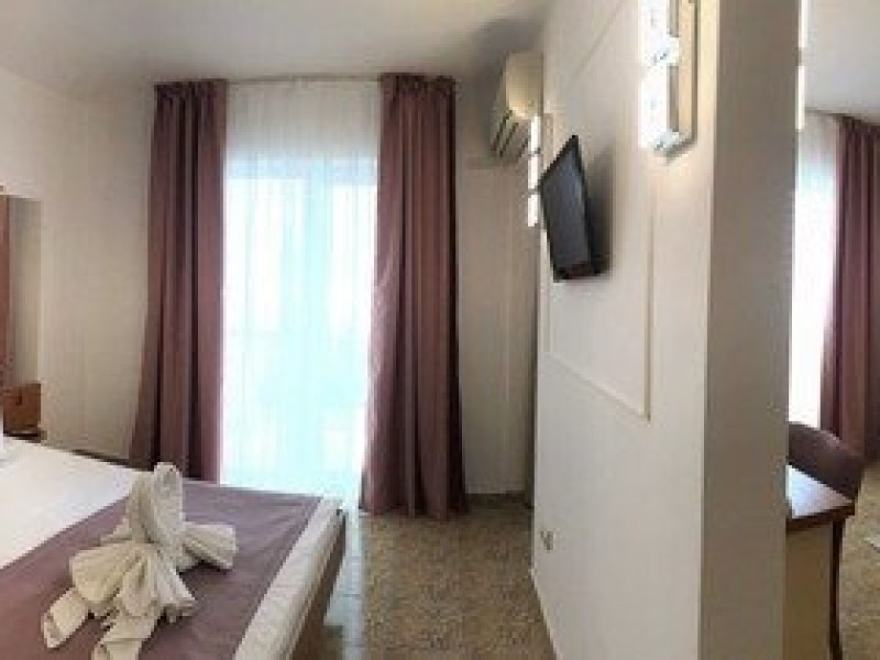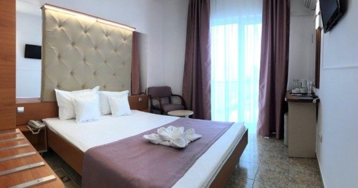 Dotari cameraToate camerele sunt dotate cu: aer conditionat, televizor LCD, telefon, frigobar, seif, uscator de par, internet. Toate camerele au balcon si vedere laterala spre mare, complexul fiind perpendicular pe Marea Neagra.