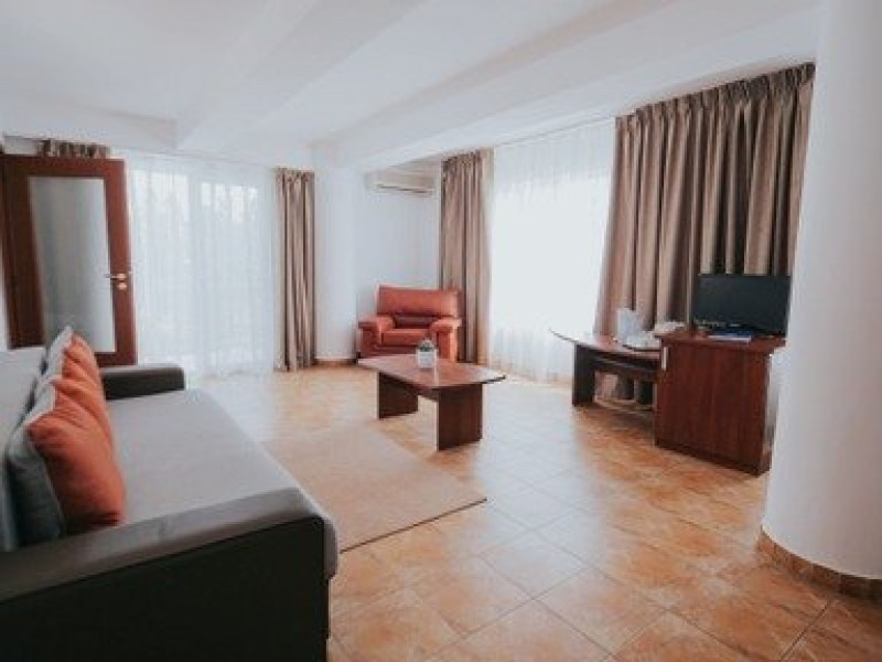 CamereComplexul Modern va ofera confort la standarde internationale, corespunzator categoriei de 4 stele, si va pune la dispozitie 173 de camere din care: 69 camere duble standard si 84 camere duble extinse, 16 garsoniere si 4 apartamente, decorate modern cu mobilier nou si confortabil, dotate cu aer conditionat, televizor LCD, telefon, frigobar, seif, uscator de par, internet, etc. Toate camerele au balcon si vedere laterala spre mare, complexul fiind perpendicular pe Marea Neagra.