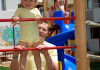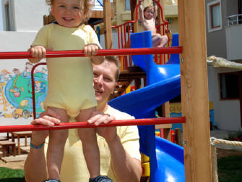 În grădina de la Monachus Hotel există un loc de joacă pentru copii special amenajat.