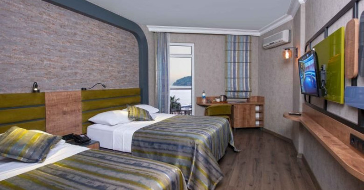 -Superior Room 15.5-21.5 mp: vedere laterala sau directa spre mare. Capacitatea maxima de trei persoane -Standard Room 15.5-21.5 mp: vedere spre gradina sau directa spre mare. Capacitatea maxima de trei persoane -2 Bedroom Family Room 40mp: vedere spre gradina. Capacitatea maxima de patru persoane.