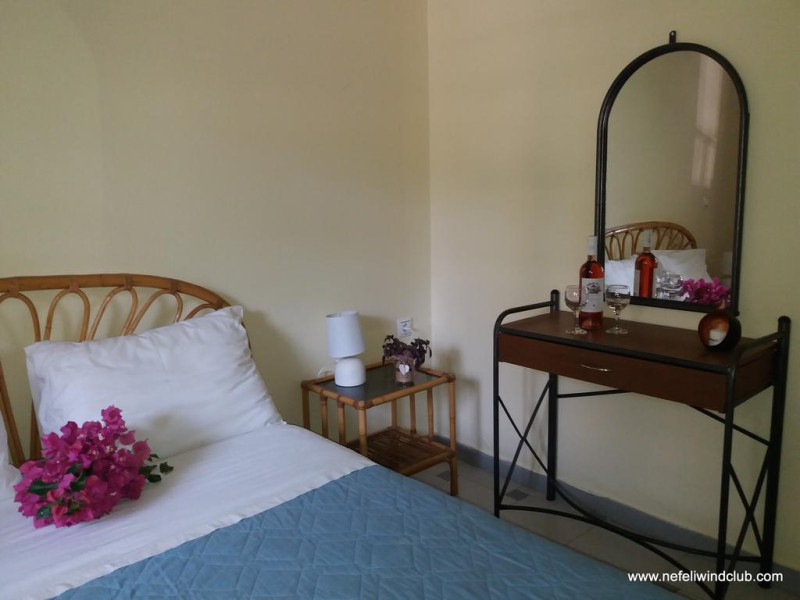 Fiecare cameră dispune de mașină pentru preparare cafea sau ceai și fierbător Camerele confortabile de la Nefeli Villas & Suites au pardoseală de gresie/ marmură, aer condiționat, Tv cu canale prin satelit și seif. În camere există baie cu cadă sau duș ce are în dotare foehn și articole de toaletă gratuite. Unele camere au balcon cu vedere la mare sau la piscină. Oaspeții au acces gratuit la serviciul Wi-fi în camere. Curățenia in cameră se face zilnic. Toate camerele spațioase de la Nefeli Villas & Suites au zonă de relaxare cu canapea, ceea ce oferă un plus de confort. În fiecare unitate de cazare există o bucătărie utilată cu frigider, plită de gătit și ustensile de bucătărie. De asemenea, sunt disponibile o zonă de luat masa și un cuptor cu microunde. Proprietatea oferă camere pentru familie cu o suprafață mai mare și un număr mai mare de paturi față de cele standard. Se pot rezerva de asemenea camere pentru nefumători.