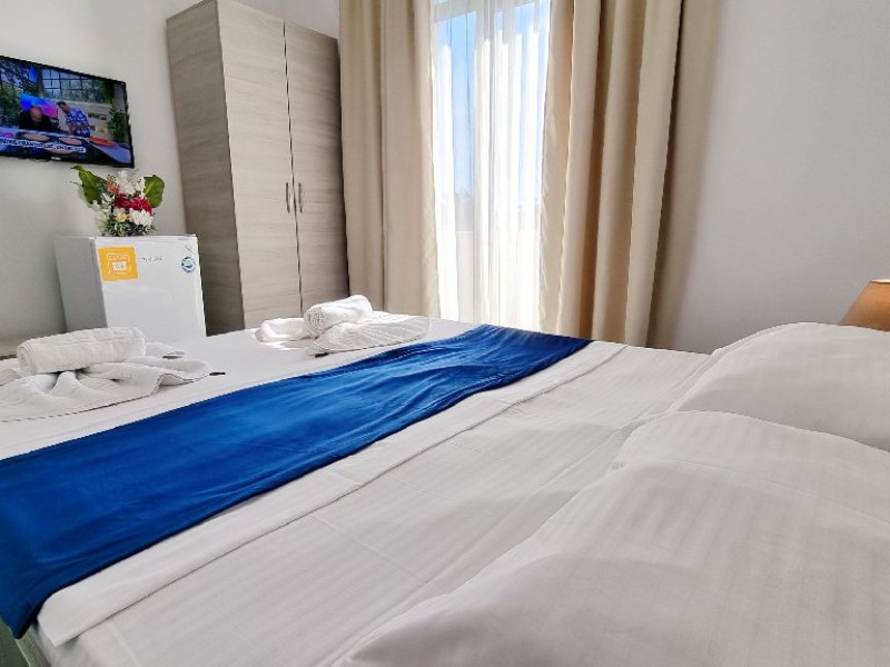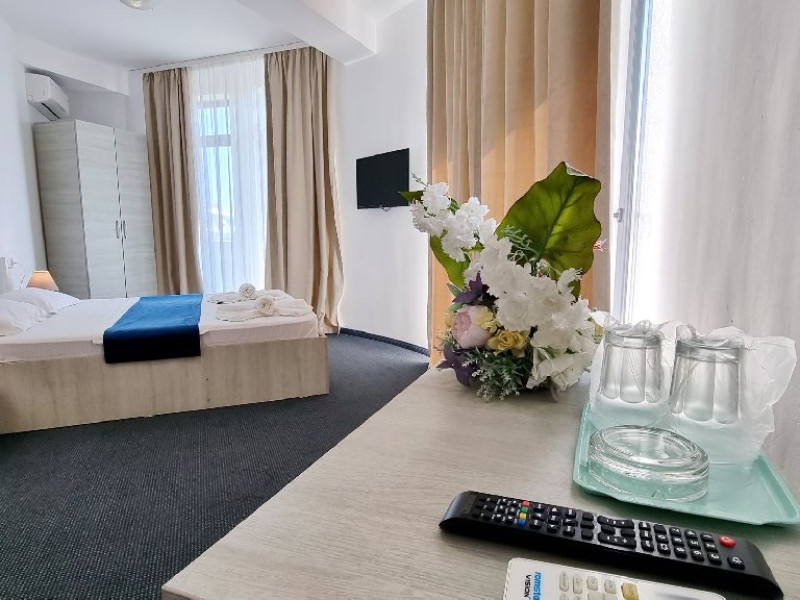 Dotari camere Camerele sunt dotate cu TV, minibar, baie proprie cu dus, aer conditionat, acces internet, parchet. Unele camere au balcon. In apartament se pot caza pana la 4 persoane.