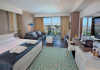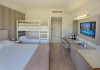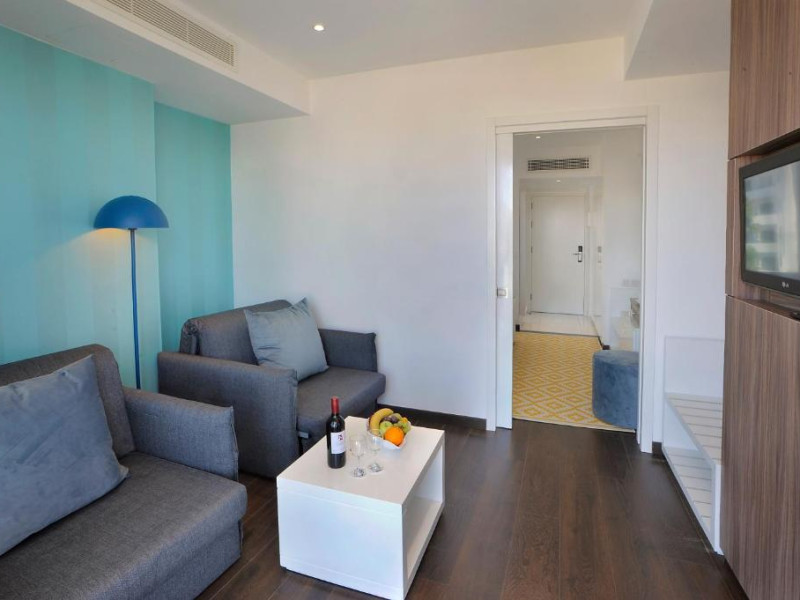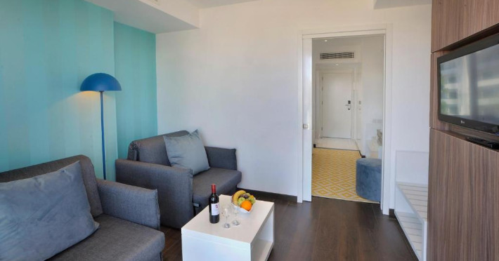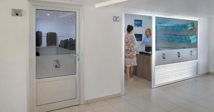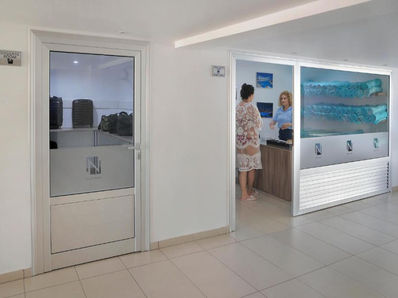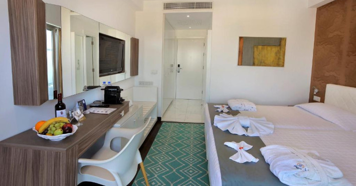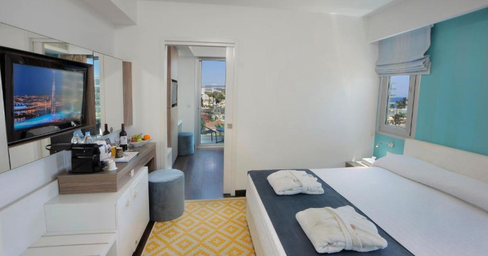 Fiecare cameră are balcon cu vedere panoramică la Marea Mediterană sau la insulă. Toate camerele mobilate simplu de la Hotelul Nestor au aer conditionat si minibar.