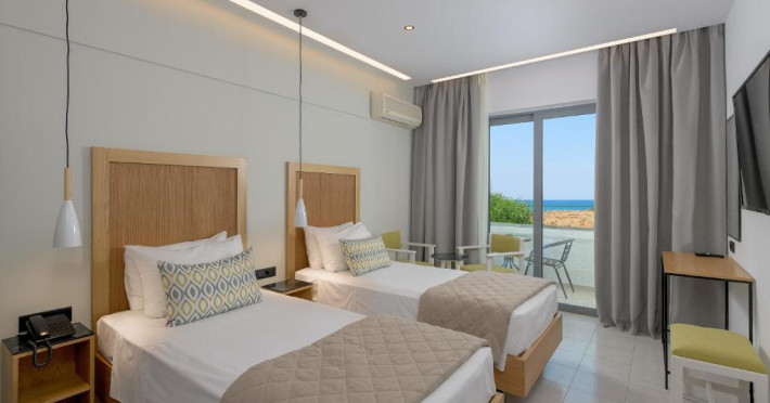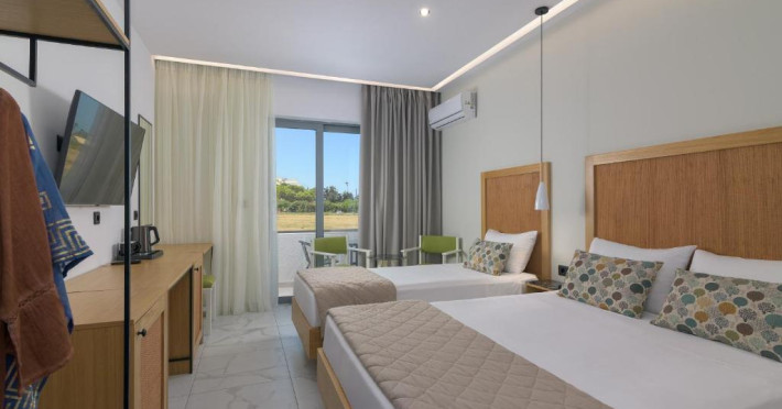 Hotelul Nirvana Beach este situat la 6 km de Aeroportul Rodos și la 20 km de orașul medieval Rodos. Recepția cu program nonstop oferă birou de turism. Proprietatea asigură parcare privată.