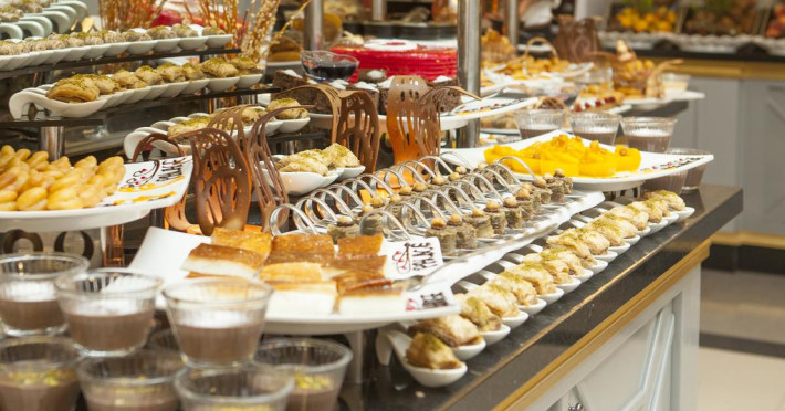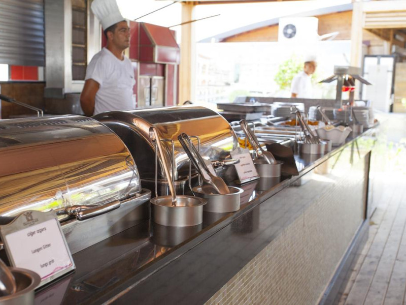 La Orange Palace oaspeții au la dispoziție 2 restaurante unde pot savura mâncăruri delicioase, în stil bufet sau à la carte. Preparate din bucătăria internațională și italiană sunt oferite zilnic la micul dejun, prânz și cină. Masa poate fi servită atât în interior, cît si în aer liber, pe terasă, în funcție de vreme. 3 baruri, dintre care unul la piscină și unul pe plajă, sunt disponibile cu o ofertă variată de băuturi răcoritoare și alcoolice. În cadrul proprietății există și un snack bar care servește băuturi și gustări.