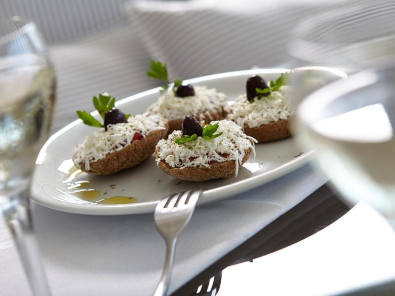 La Orizontes Hotel & Villas oaspeții au la dispoziție un restaurant care servește mâncare à la carte. Preparate din bucătăria grecească și internațională așteaptă să fie degustate în fiecare zi la micul dejun, prânz și cină. Masa poate fi servită atât în interior, cît si în aer liber, pe terasă, în funcție de vreme. Oaspeţii pot avea diverse băuturi răcoritoare sau alcoolice la bar. Pentru cei cu anumite nevoi de nutriție, Orizontes Hotel & Villas oferă meniuri pentru diete speciale.