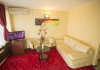 Apartament Living-ul apartamentului are in dotare o canapea extensibila cu saltea Relaxa pentru maxim doua persoane. Dormitorul acestuia are in dotare pat matrimonial pentru maxim doua persoane. La cerere putem monta un pat pliant suplimentar pentru a cincea persoana. Toate apartamentele dispun de o vedere superba la Marea Neagra.