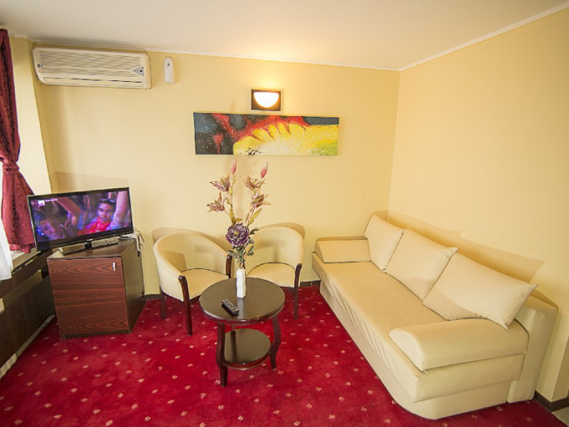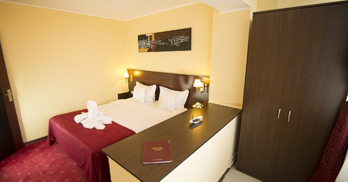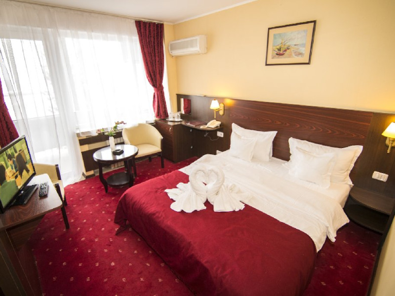 Camere Hotelul dispune de 380 de locuri de cazare complet renovate Cai aduse la standarde de confort maxim. Camerele sunt primitoare, culorile beige-visiniu folosite la amenajarea lor asigurand un confort Cai o relaxare de care oricine are nevoie atunci cand alege o vacanCaa relaxanta la mare. Tipuri camera Dubla Standard Camerele duble standard au paturi matrimoniale sau paturi twin si pot caza maxim 2 adulti si 1 copil (cu pat suplimentar).