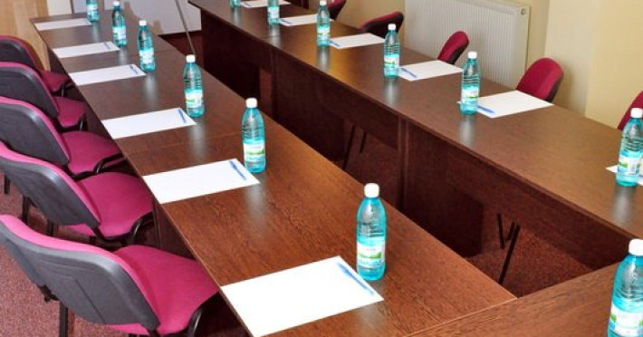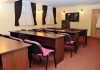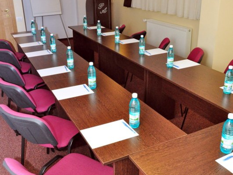 DESCRIERE UNITATE DE CAZARE Pensiunea dispune de: - incalzire centrala - sistem electronic de avertizare a incendiilor - sistem electronic de supraveghere a spatiilor publice ( CCTV ) - salon de servire a micului dejun - bar de zi si salon de mic dejun - spalatorie si calcatorie - 2 sali de conferinte cu capacitati de 40 si respectiv 28 locuri, dotate cu videoproiector, internet wireless, lumina naturala si artificiala, flichart, whiteboard, CATV - se accepta carduri visa, mastercard, eurocard si amex - seif - rent a car - birou turism si excursii - Ambient Exclusive oferit gratuit numai oaspetilor Ambient
