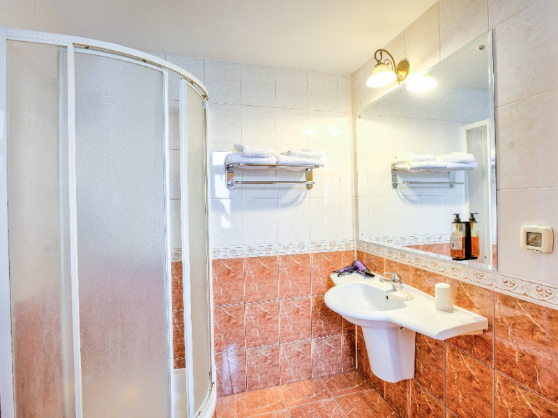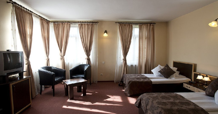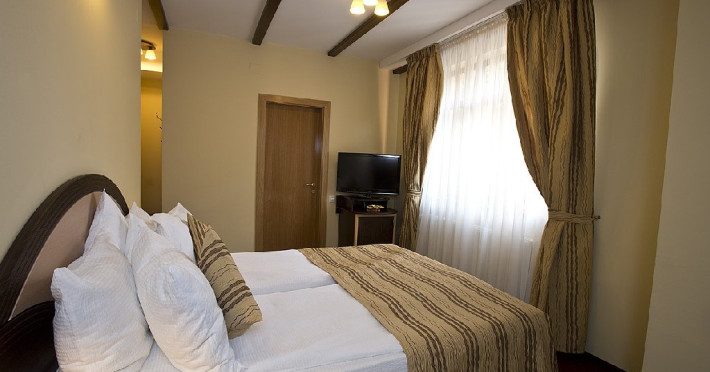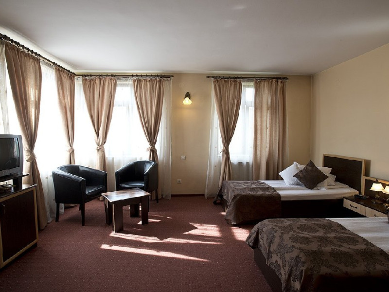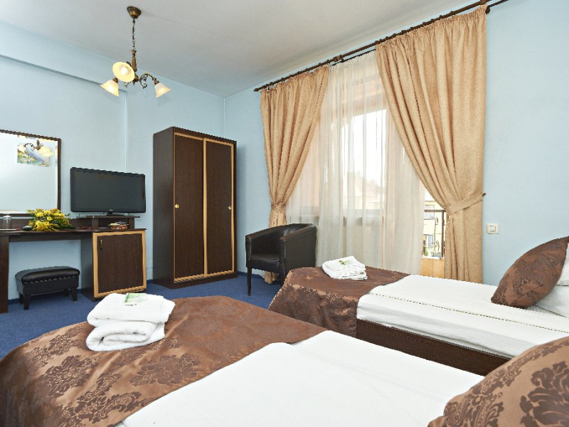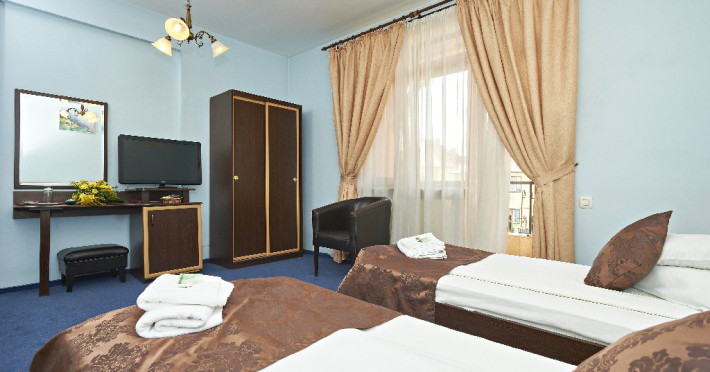 DESCRIERE CAMERE Camerele dispun de: - uscator de par - telefon cu acces international - minibar - televiziune prin cablu - LCD TV - port acces internet - radio ceas - balcon sau terasa Apartamentele dispun suplimentar de: - pat matrimonial - living - 2 televizoare - canapea extensibila Gratuit oferim oaspetilor nostri urmatoarele servicii: - apel de trezire automat - internet de mare viteza - periodice si jurnale nationale si internationale - primirea / transmiterea corespondentei