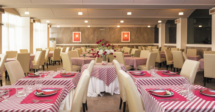 La Perama Hotel oaspeții au la dispoziție un restaurant care servește mâncare în stil bufet. Preparate din bucătăria locală și internațională așteaptă să fie degustate în fiecare zi la micul dejun, prânz și cină. Masa poate fi servită atât în interior, cît si în aer liber, pe terasă, în funcție de vreme. Oaspeţii pot avea diverse băuturi răcoritoare sau alcoolice la bar. În cadrul proprietății există și un snack bar care servește băuturi și gustări. Pentru cei cu anumite nevoi de nutriție, Perama Hotel oferă meniuri pentru diete speciale.