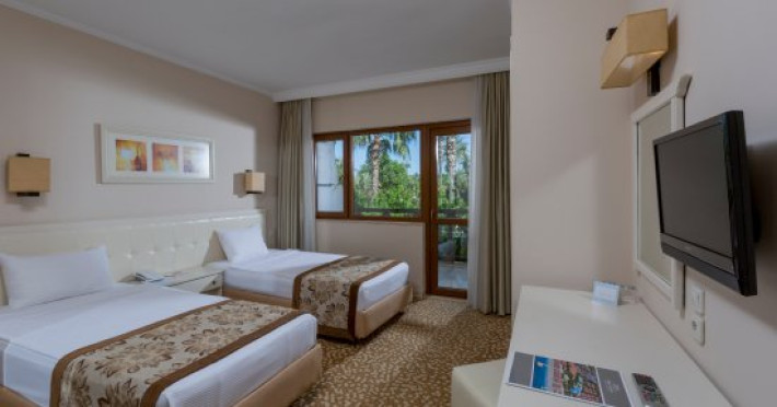 Unele camere au balcon cu vedere la mare sau la grădină. Camerele luminoase de la Pgs Kiris Resort sunt dotate cu mochetă, aer condiționat, Tv cu canale prin satelit și seif. Fiecare cameră dispune de minibar. Oaspeții pot solicita serviciul de room service pentru a servi masa sau diverse băuturi. În camere există baie cu cadă sau duș ce are în dotare foehn și articole de toaletă gratuite. Oaspeții au acces gratuit la serviciul Wi-fi în camere. Curățenia in cameră se face zilnic. Proprietatea oferă camere pentru familie cu o suprafață mai mare și un număr mai mare de paturi față de cele standard. Se pot rezerva de asemenea camere pentru nefumători.