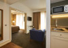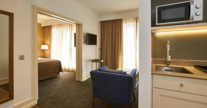 Camerele au nuanțe neutre, TV cu ecran plat de 40 inch și persoane de ceai și cafea. Suitele includ un bar cu chiuvetă, iar toate băile au articole de toaletă marca Rituals.