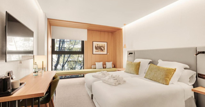The Protur Naisa Palma is a modern 4 star art hotel to be inaugurated in January 2019. It is ideally situated in the centre of Palma, just a 5 minute stroll from the port the sea promenade, a few metres from the well known and select shopping area of Jaime III and the picturesque quarter of Santa Catalina, famous for the wide variety of restaurants leisure facilities on offer. Its 99 modern cosy rooms are all fully air conditioned soundproofed. They offer accommodation for 2 people with free Wifi Smart TV, full bathroom with underfloor heating toiletries as well as a safe mini-fridge. In the Lobby Reception area a special mention must be made to the Gastrobar - Caf with a varied gastronomy on offer; daily menus as well as special services for work meetings in the caf or Living Room area. On the rooftop terrace of the Protur Naisa you can visit our SkyBar with open air pool chill-out area; a special meeting point for events after work.