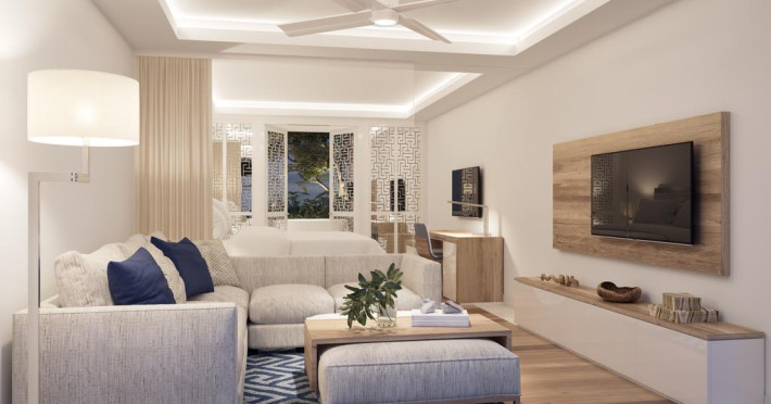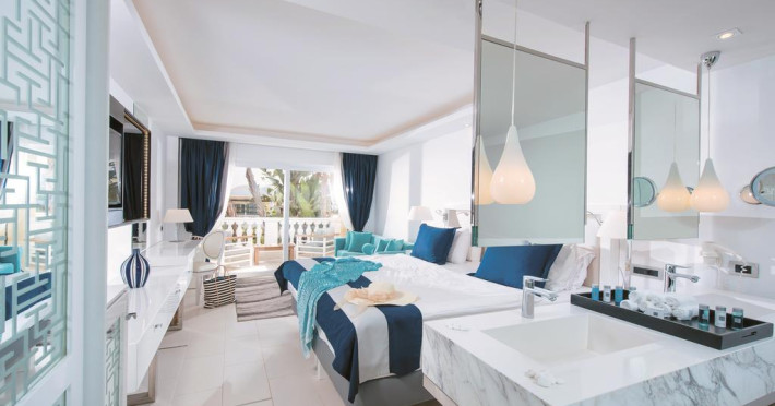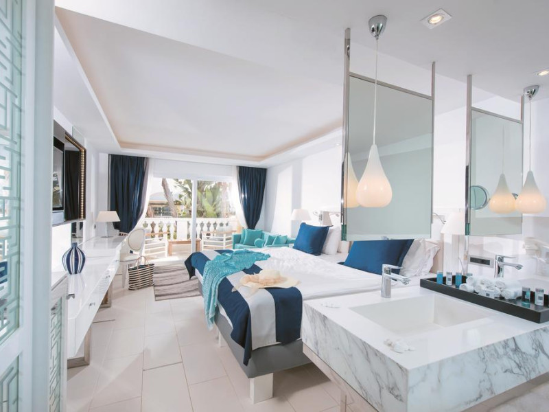 Sunt disponibile 318 camere. Camerele confortabile de la Radisson Blu Beach Resort au pardoseală de gresie/ marmură, aer condiționat, Tv cu canale prin satelit și seif. Unele camere au balcon cu vedere la mare sau la grădină. Fiecare cameră dispune de un aparat pentru preparare cafea sau ceai, cană-fierbător și minibar. Oaspeții pot solicita serviciul de room service pentru a servi masa sau diverse băuturi. În camere există baie cu cadă sau duș, foehn, articole de toaletă gratuite, precum și halate de baie și papuci. Oaspeții au acces gratuit la serviciul Wi-fi în camere. Curățenia in cameră se face zilnic. Anumite camere au zonă de relaxare și cadă cu hidromasaj care asigură un plus de confort și răsfăț. Proprietatea oferă camere pentru familie cu o suprafață mai mare și un număr mai mare de paturi față de cele standard.