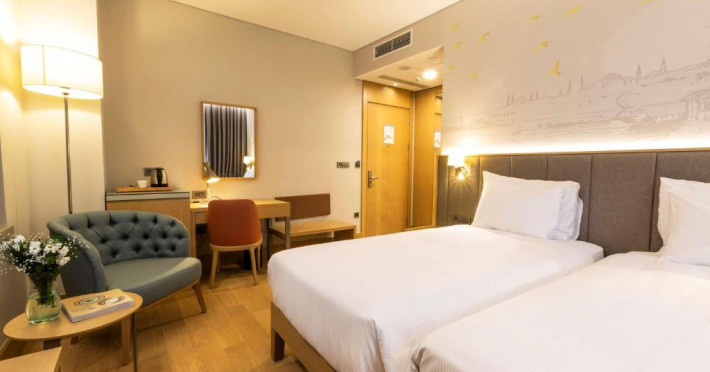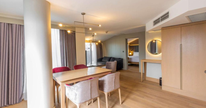 Opțiuni de luat masa: Restaurantul potrivit pentru familii servește preparate din bucătăria mediteraneană, turcească și internațională, oferind opțiuni halal și vegetariene. Oaspeții se pot bucura de micul dejun cu specialități locale, mancăruri calde, produse de patiserie proaspete și multe altele. Barul oferă o atmosferă relaxantă pentru băuturi seara.
