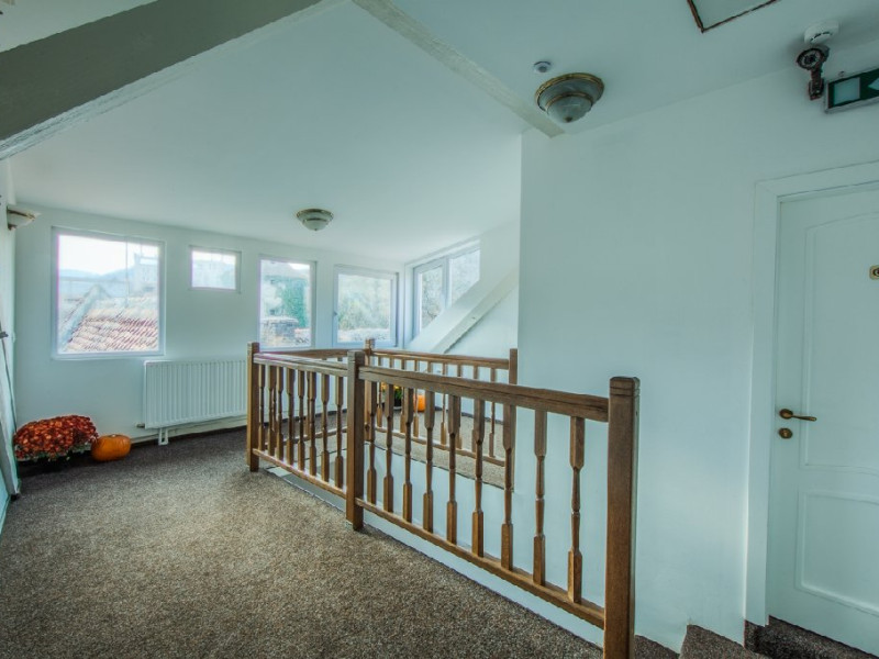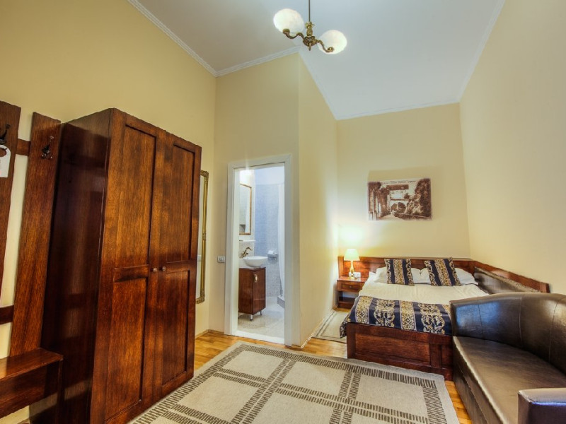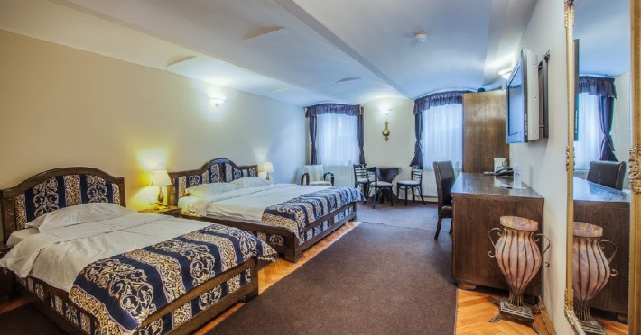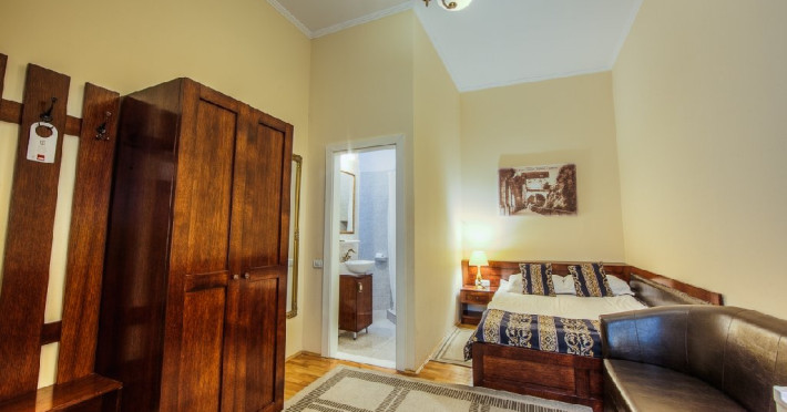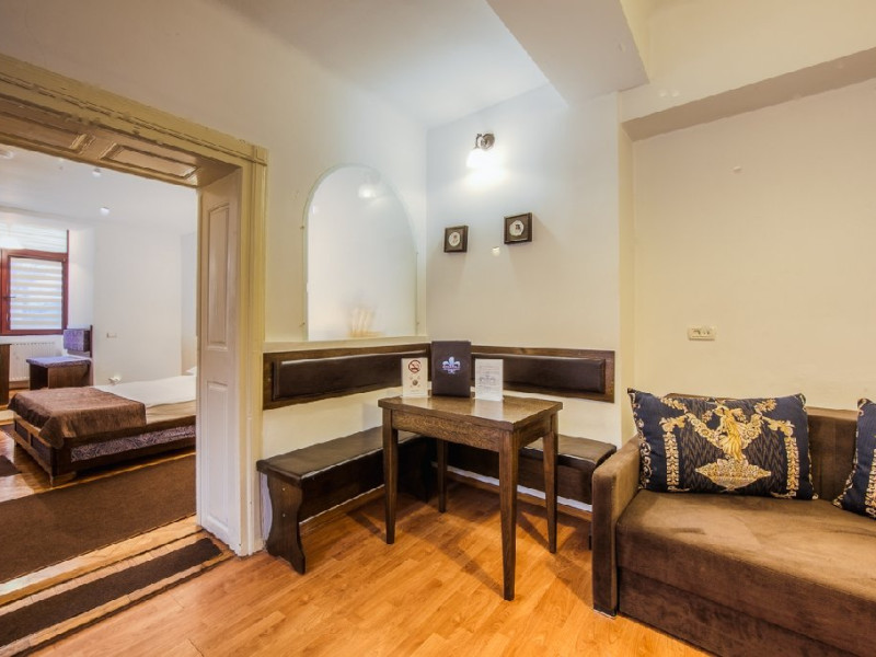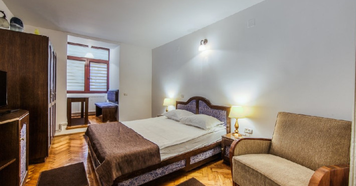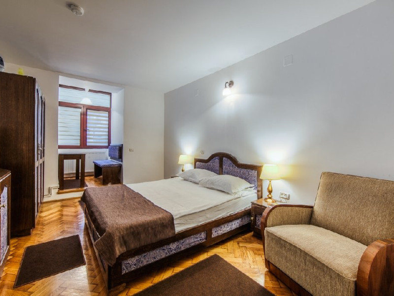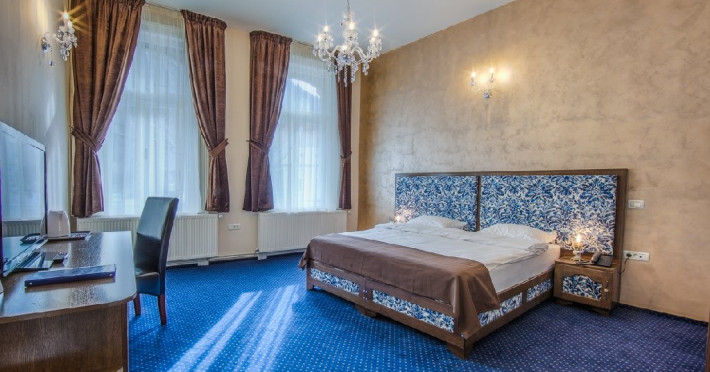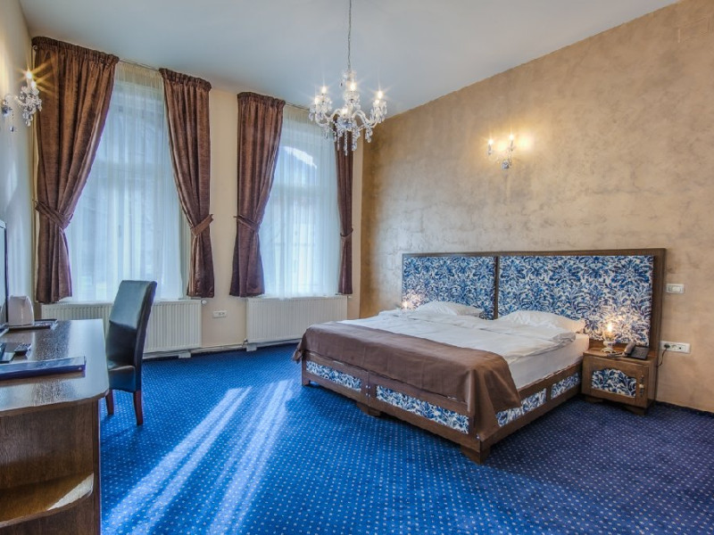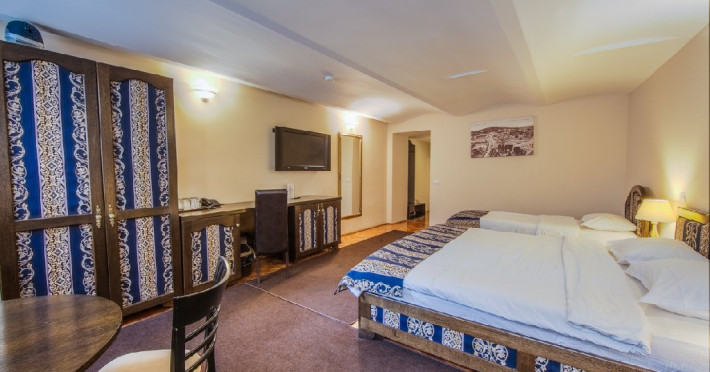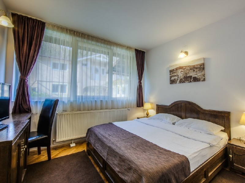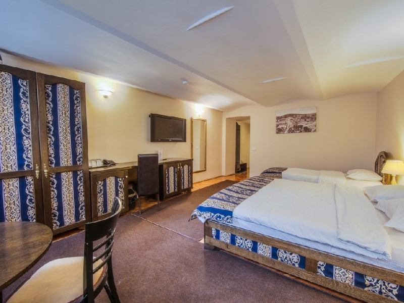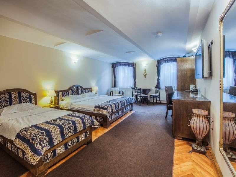 DESCRIERE CAMERE: - camere duble/twin standard: 11 camere - camere duble deluxe: 5 camere - camere duble deluxe cu vedere la Biserica Neagra: 6 camere - apartament standard (dormitor matrimonial si living cu canapea extensibila): 2 camere - apartament deluxe (dormitor matrimonial si living cu canapea dubla): 1 camere Camerele standard dispun de: - uscator de par - frigobar - TV LCD sau Plasma - acces internet wireless - radio - ceas - seif in camera - decor si amenajari specifice perioadei interbelice - fierbator de apa